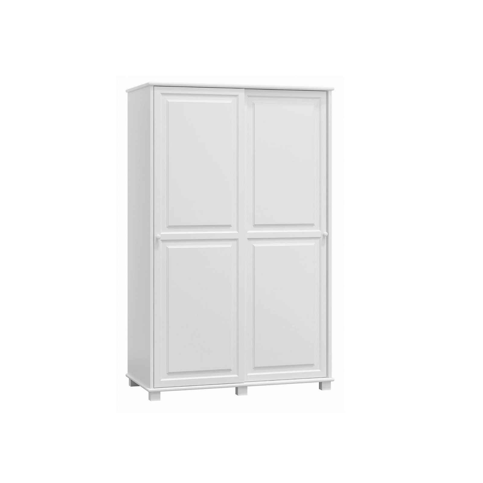Šatní skříň s posuvnými dveřmi Materiál: masiv borovice, tloušťka 2,6 cm Barva moření: bílá Rozměry (výška x šířka x hloubka): 190 x 120 x 60 cm Dodáváno v demontu.
