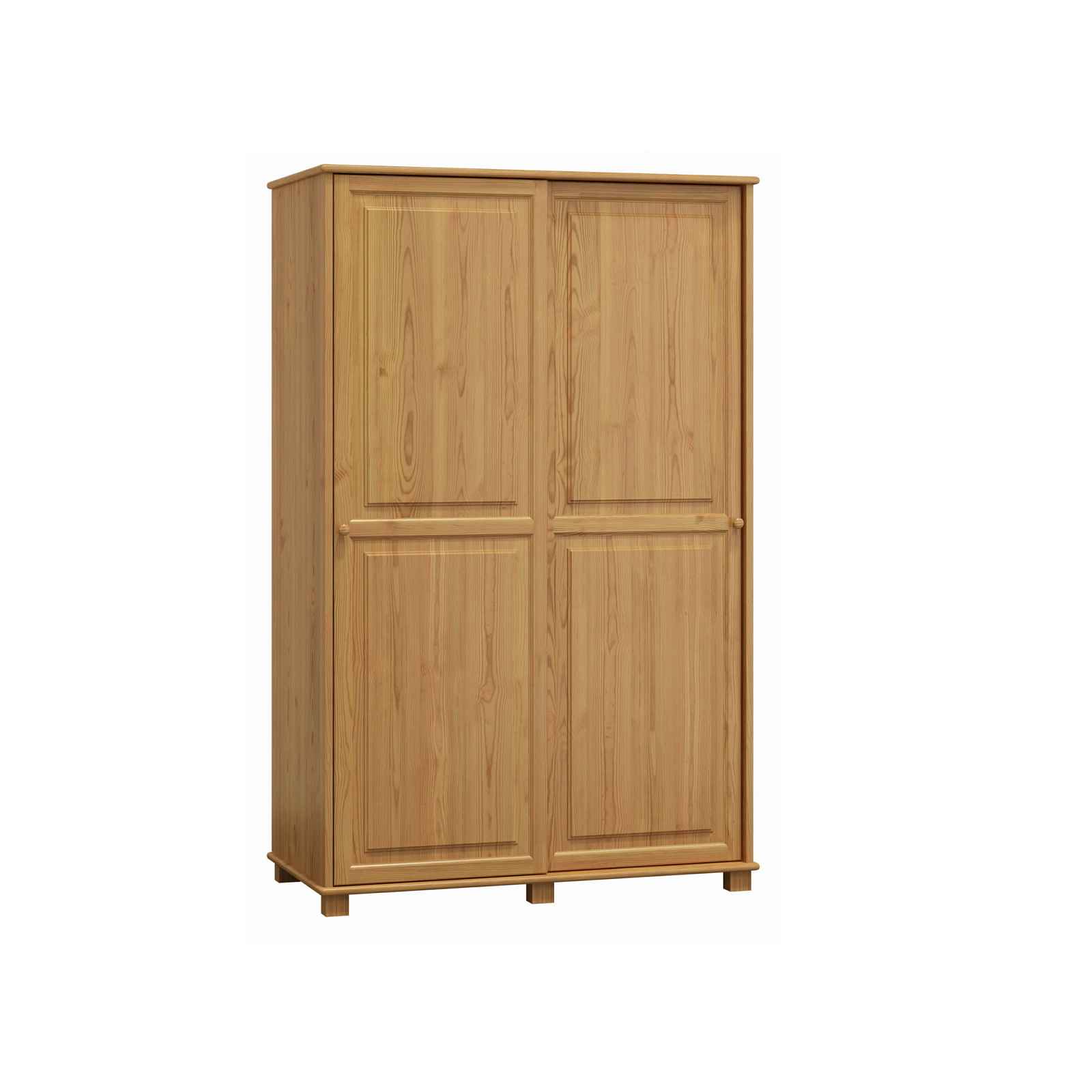 Šatní skříň s posuvnými dveřmi Materiál: masiv borovice, tloušťka 2,6 cm Barva moření: olše Rozměry (výška x šířka x hloubka): 190 x 133 x 60 cm Dodáváno v demontu.
