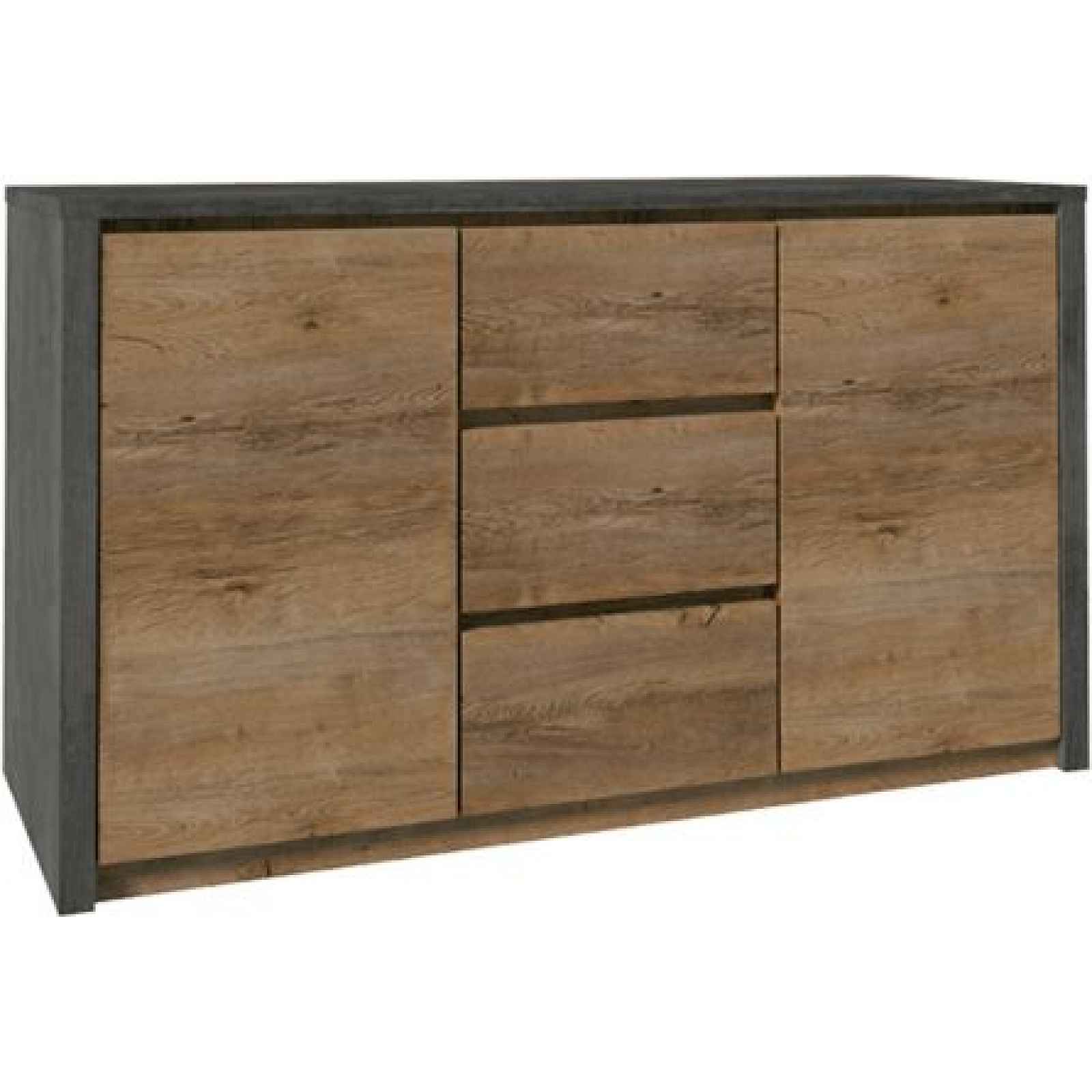 Komoda, MONTANA K2DP Materiál: DTD laminovaná/ABS hrany Barva: dub lefkas tmavý / smooth šedý Rozměry ŠxHxV: 140x43x80 cm Tloušťka materiálu: 15 mm Dodávané v demontu.