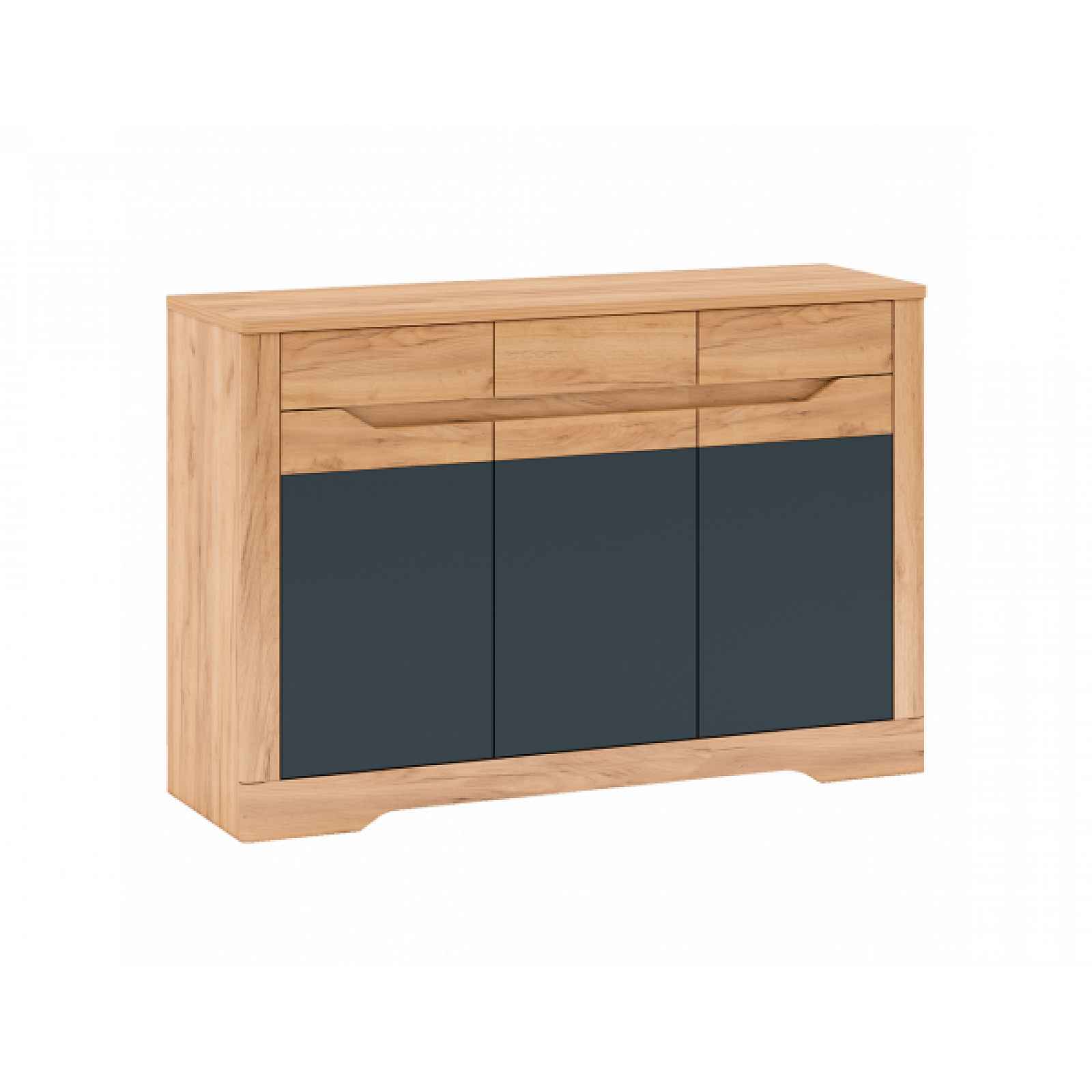 Komoda FIDEL E, dub craft zlatý/grafit šedá. Materiál: DTD laminovaná / MDF Barva: dub craft zlatý /grafit šedá Rozměry (ŠxHxV): 135x42x91 cm Tloušťka materiálu korpus: 16 mm Tloušťka materiálu vrchní deska: 22 mm tři šuplíky dvě skříňky. Prohlédněte si i další prvky kolekce Fidel. Dodáváme v demontu.