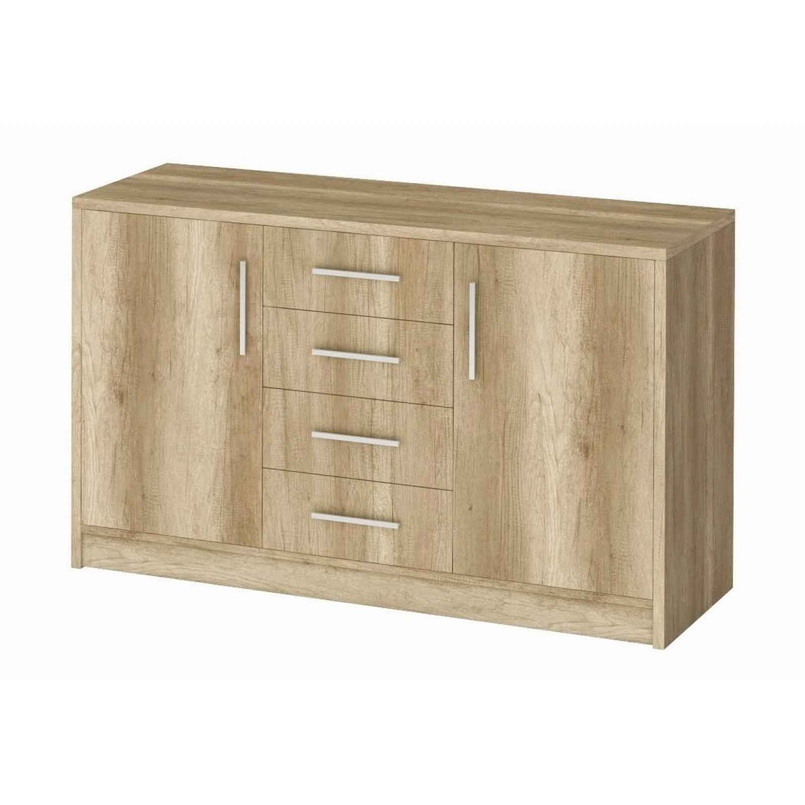 Komoda 2, dub country šedý.Komoda dvoudveřová se 4 zásuvkami v moderním provedení. Korpus i dvířka jsou z kvalitního LTD. Výška: 83 cm Šířka: 140 cm Hloubka: 45 cm Barva podrobně: dub country šedý Materiál: LTD (lamino) Dodáváno v demontu. Záruka 24 měsíců.