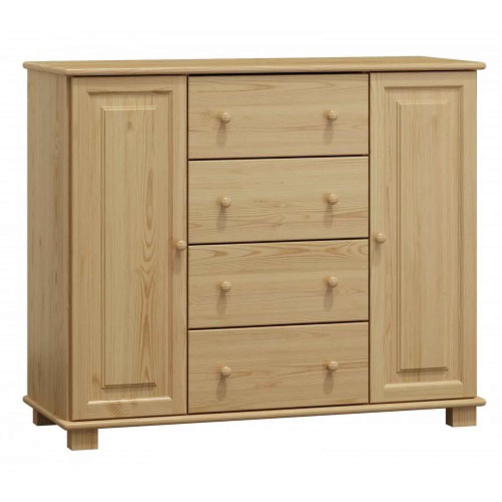 Kombinovaná komoda se dvěma dvířky a čtyřmi zásuvkami Materiál: masiv borovice Rozměry (výška x šířka x hloubka): 100 x 118 x 42 cm Dodáváno v demontu.