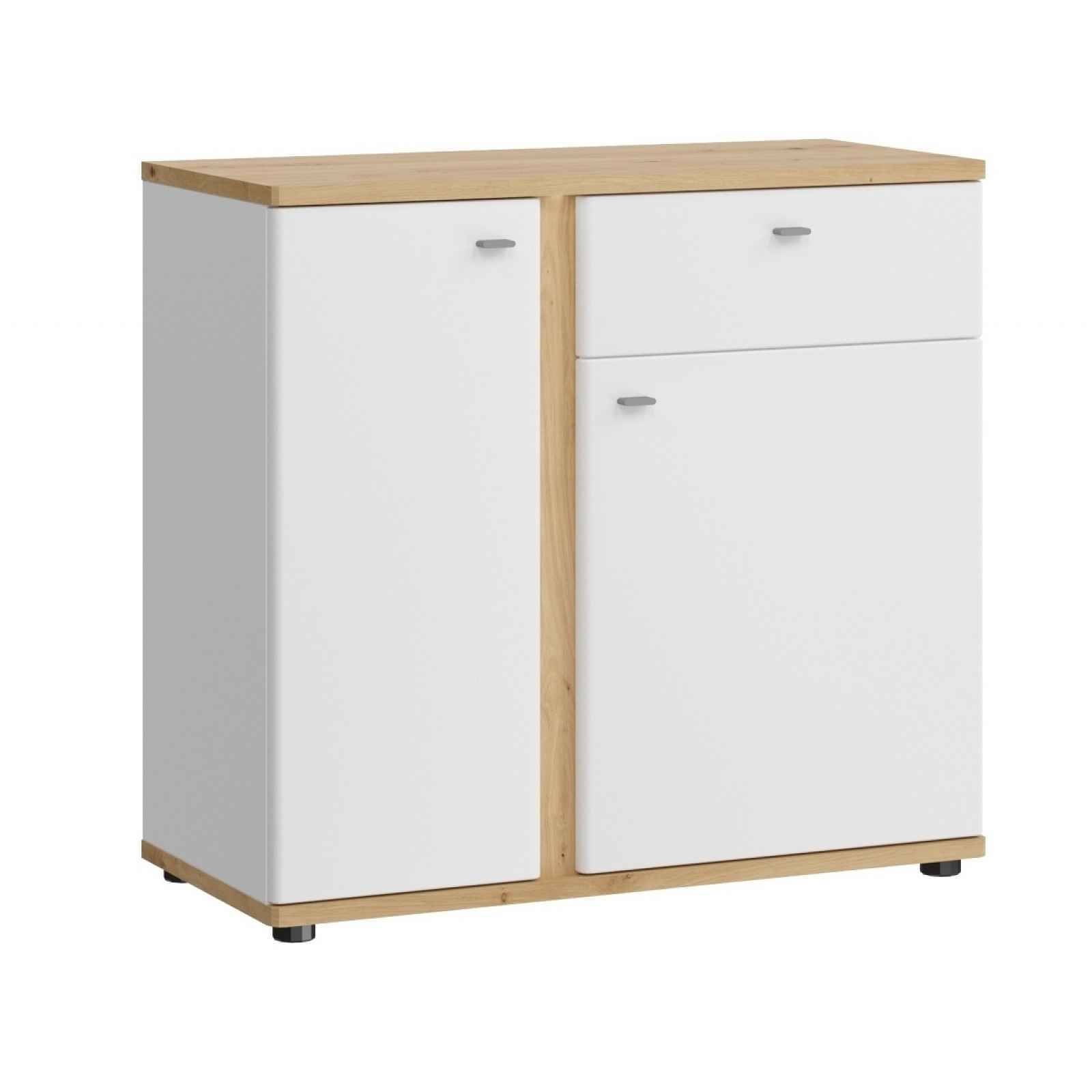 Kombinovaná komoda Sektor se skládá ze 7 moderních kousků viz příslušenství. Standardní nábytek má osvětlení věnců. Disponuje panty a vodítky zásuvek s tichým zavíráním. Barva: - korpus: alpská bílá/dub artisan - dvířka: bílý lesk Rozměr (šxvxh): 94 x 87 x 42 cm Materiál: - korpus: lamino - dvířka: MDF o síle 19 mm Dodáváno v demontu. Rozměry a váhy balíků:1. balík – 43 x 11,4 x 111,4 cm, 23,06 kg2. balík – 57,4 x 8,4 x 107,8 cm, 21,6 kg