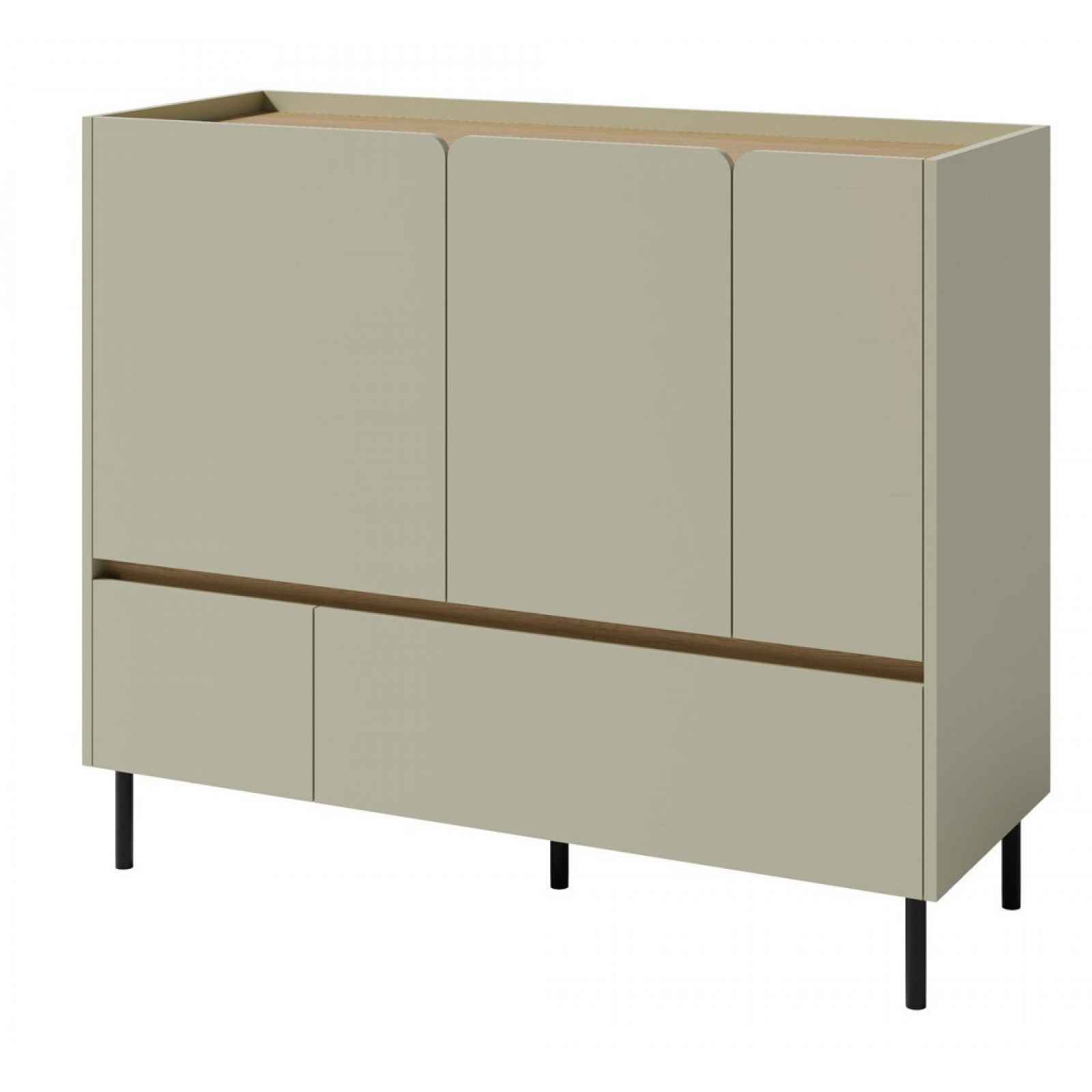 Komoda z kolekce Lucky - nábytek v nadčasovém minimalistickém stylu pasuje univerzálně do dětského pokoje, pokoje teenagerů i domácí pracovny. Komoda z kolekce Lucky – nábytek v nadčasovém minimalistickém stylu pasuje univerzálně do dětského pokoje, pokoje teenagerů i třeba domácí pracovny, kde vždy prakticky poslouží. Tento univerzální nábytek lze využít v každém moderním interieru a téměř každé místnosti vašeho bytu. Komoda o šířce 120 cm má 2 šuplíky a 3 dveře, za kterými najdete úložné prostory s policemi. - komoda se 2 šuplíky z kolekce Lucky - materiál: laminovaná dřevotříska 16 mm (ABS hrany), kov, plast - dekor: eukalyptově zelená mat/baltský dub - úchyt: bezúchytové otevírání boční hranou - podnož: kov, hranatý profil, černý lak, výška 13 cm - moderní minimalistický design - zaoblené linie - univerzální pro všechny věkové kategorie (dětský pokojíček, pokoj teenagerů, pro dospělé, do pracovny atd.) - šířka: 120 cm - 2 x zásuvka (kovové boční pojezdy) - 1 x levé dveře (úložný prostor, 1 x police) - 1 x středové levé dveře (úložný prostor, 1 x police) - 1 x pravé dveře (úložný prostor, 1 x police) - stabilní konstrukce - dodáváno v demontu