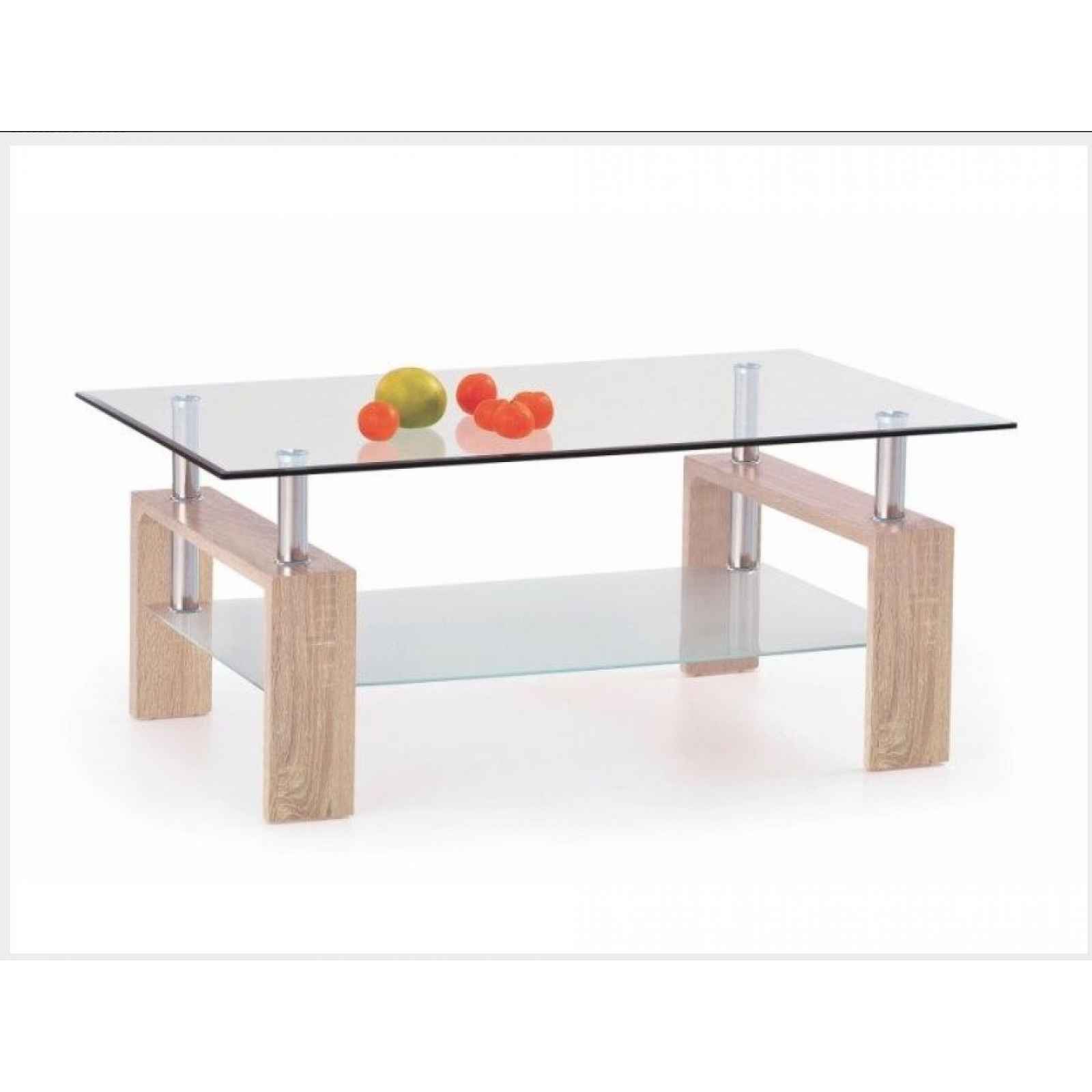Konferenční stolek Materiál: sklo/MDF lamino. Barva: dub sonoma. Rozměry (dxšxv): 110 x 60 x 55 cm. Dodání v demontu. Záruka 24 měsíců.
