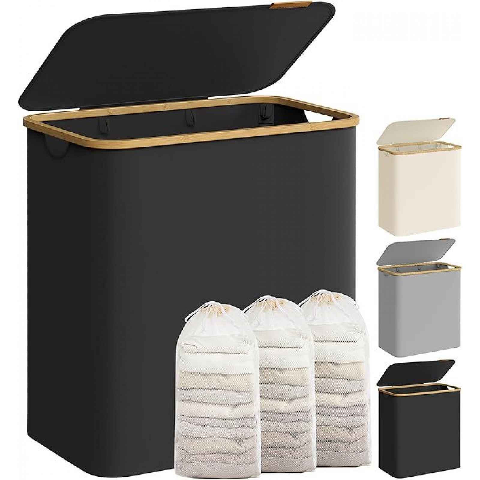 Užijte si pořádek a styl v každé domácnosti díky tomuto prostornému koši na prádlo s objemem 150 litrů. Tři oddělené přihrádky umožní snadné třídění prádla celé rodiny, zatímco elegantní černý design s bambusovým rámem vynikne v každé místnosti. Praktické víko chrání vaše soukromí a udržuje prádlo skryté před zraky i prachem. Odolná konstrukce z 600D Oxford tkaniny zajišťuje dlouhou životnost a snadnou údržbu. Vnitřní výztuhy z laminátových tyčí poskytují stabilitu, zatímco vyjímatelné vložky s uchy usnadňují přenášení prádla přímo do pračky. Sestavení zvládnete během 5 minut bez nářadí. TOP 5 klíčových výhod Velký objem 150 l – Ideální pro vícečlennou rodinu. Tři oddělené přihrádky – Snadné třídění prádla. Odolný materiál – 600D Oxford tkanina je voděodolná a pevná. Snadná montáž – Bez použití nářadí během 5 minut. Elegantní design – Bambusový rám dodá styl každé místnosti. Technické údaje Barva: černá Materiál: 600D Oxford tkanina, bambus, laminátové tyče, karton Objem: 150 l Rozměry: 60 x 38,5 x 70,5 cm Max. nosnost: 20 kg Obsah balení Koš na prádlo: 1 ks Objevte chytré řešení pro třídění prádla celé rodiny.