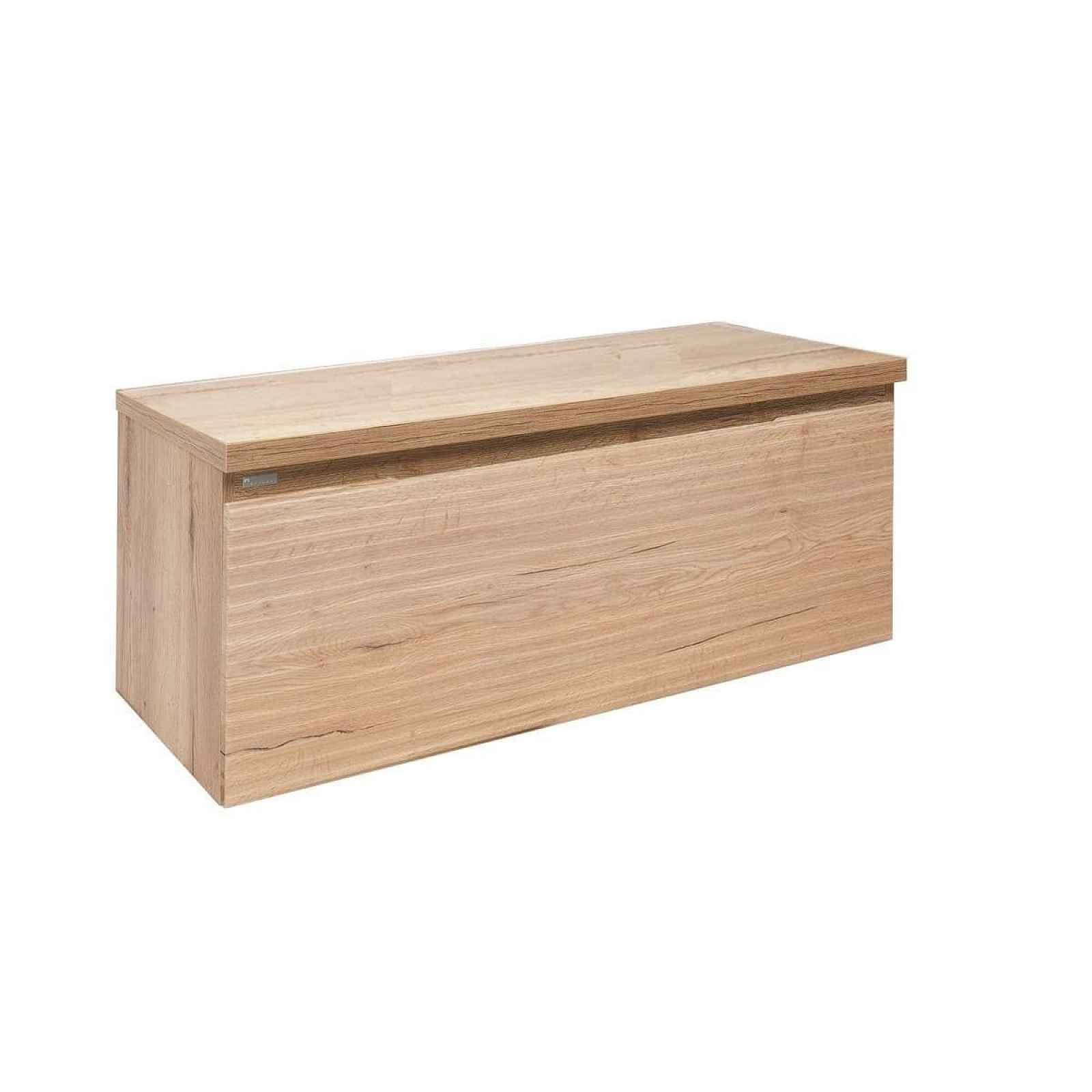 Závěsná koupelnová skříňka s krycí deskou v dekoru dub s matným povrchem o rozměru 119x50x44,3 cm. Povrch v provedení lamino.