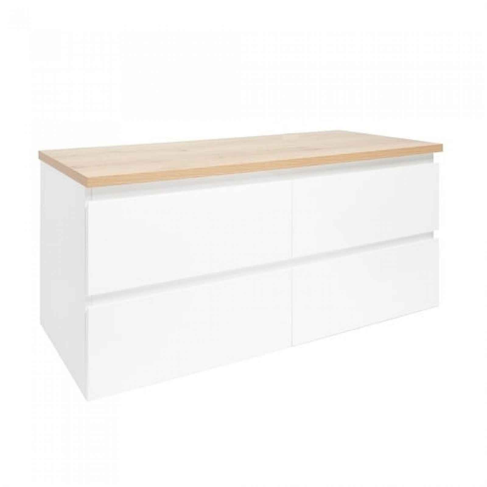 Závěsná koupelnová skříňka s krycí deskou v bílé barvě v lesklém provedení o rozměru 119x50x45 cm. Povrch v provedení lamino.