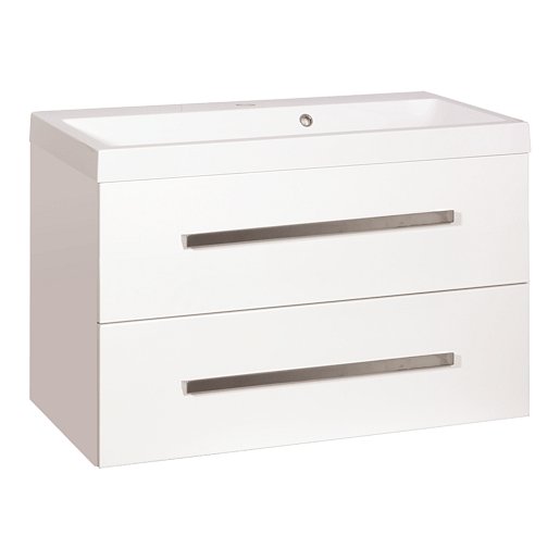 Závěsné skříňka do koupelny s umyvadlem z litého mramoru. Malá hloubka, ideální do menších koupelen. Zásuvky mají plnovýsuv s dotahem. Součástí dodávky není vodovodní baterie a sifon.