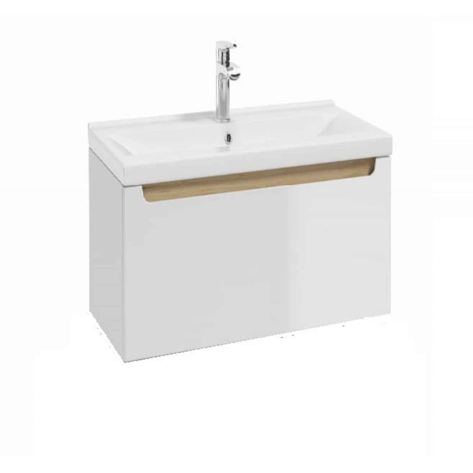 Závěsná koupelnová skříňka s keramickým umyvadlem VERSO60 v bílé barvě. O rozměru 60x30x45 cm. Čelní plocha MDF lakovaná. Zásuvka s výřezem pro sifon. Výrobek je dodáván v rozloženém stavu včetně montážního návodu.