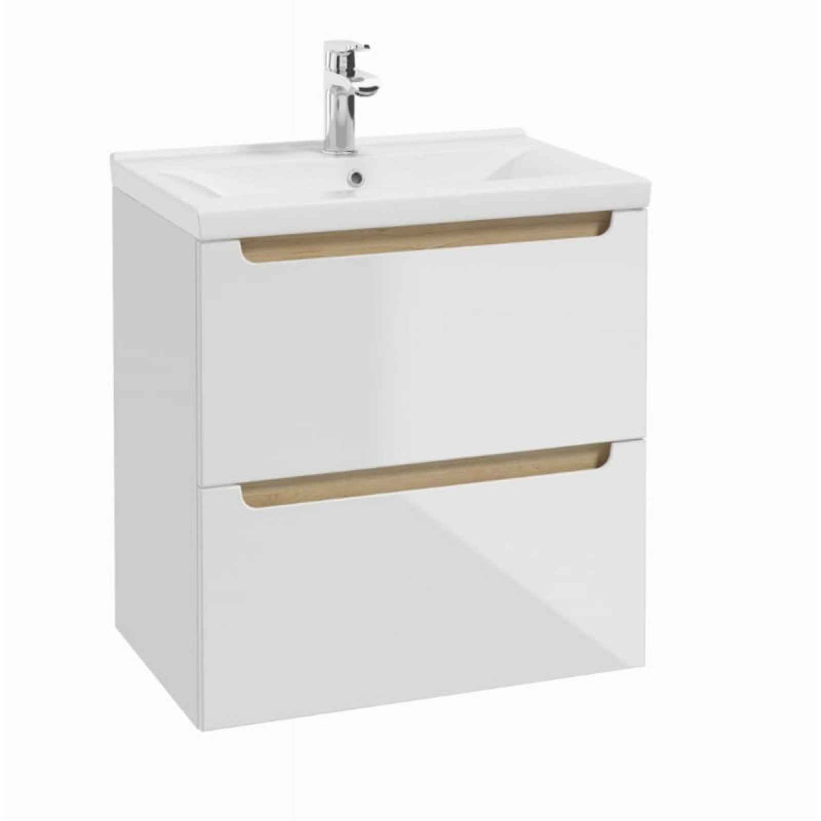 Závěsná koupelnová skříňka s keramickým umyvadlem VERSO60 v bílé barvě. O rozměru 60x60x45 cm. Čelní plocha MDF lakovaná. Horní zásuvka s výřezem pro sifon. Výrobek je dodáván v rozloženém stavu včetně montážního návodu.