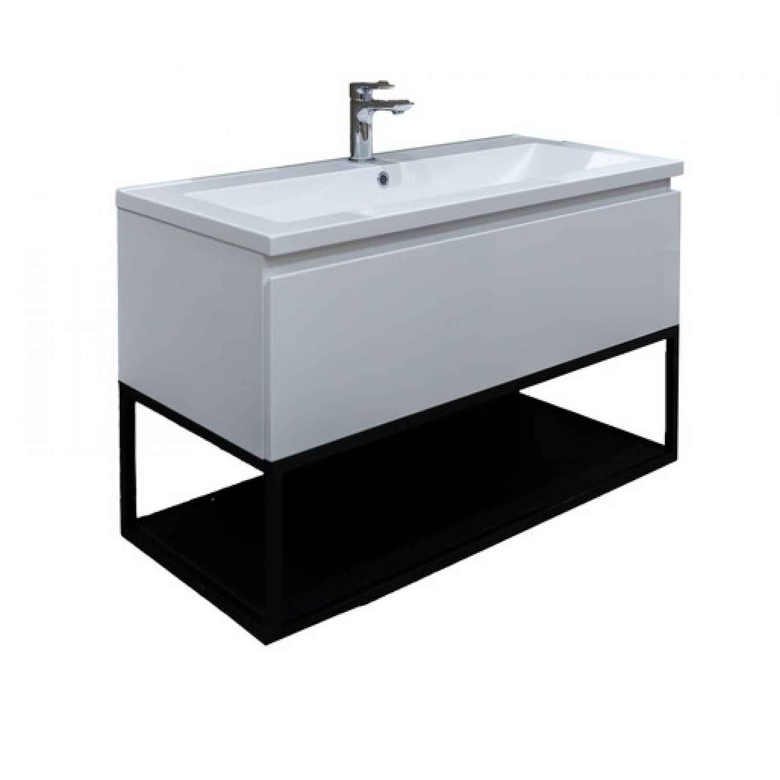 Závěsná koupelnová skříňka s umyvadlem z litého mramoru v bílé barvě v lesklém provedení. Povrch v provedení lamino.