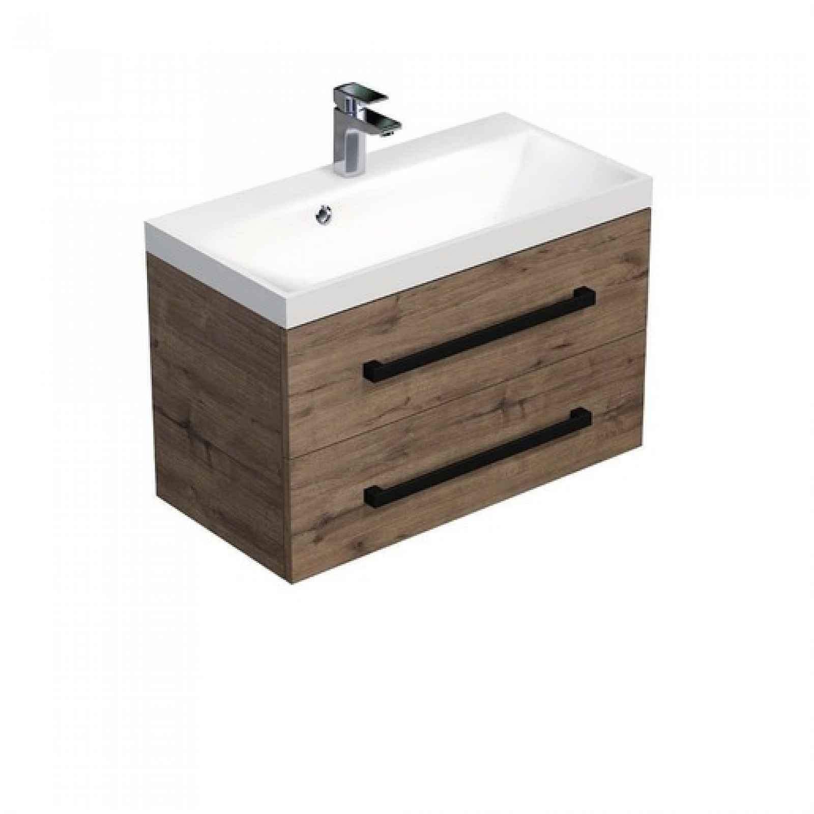 Závěsná koupelnová skříňka s umyvadlem z litého mramoru v provedení dub wellington s matným povrchem o rozměru 80x71x40 cm. Povrch v provedení lamino.