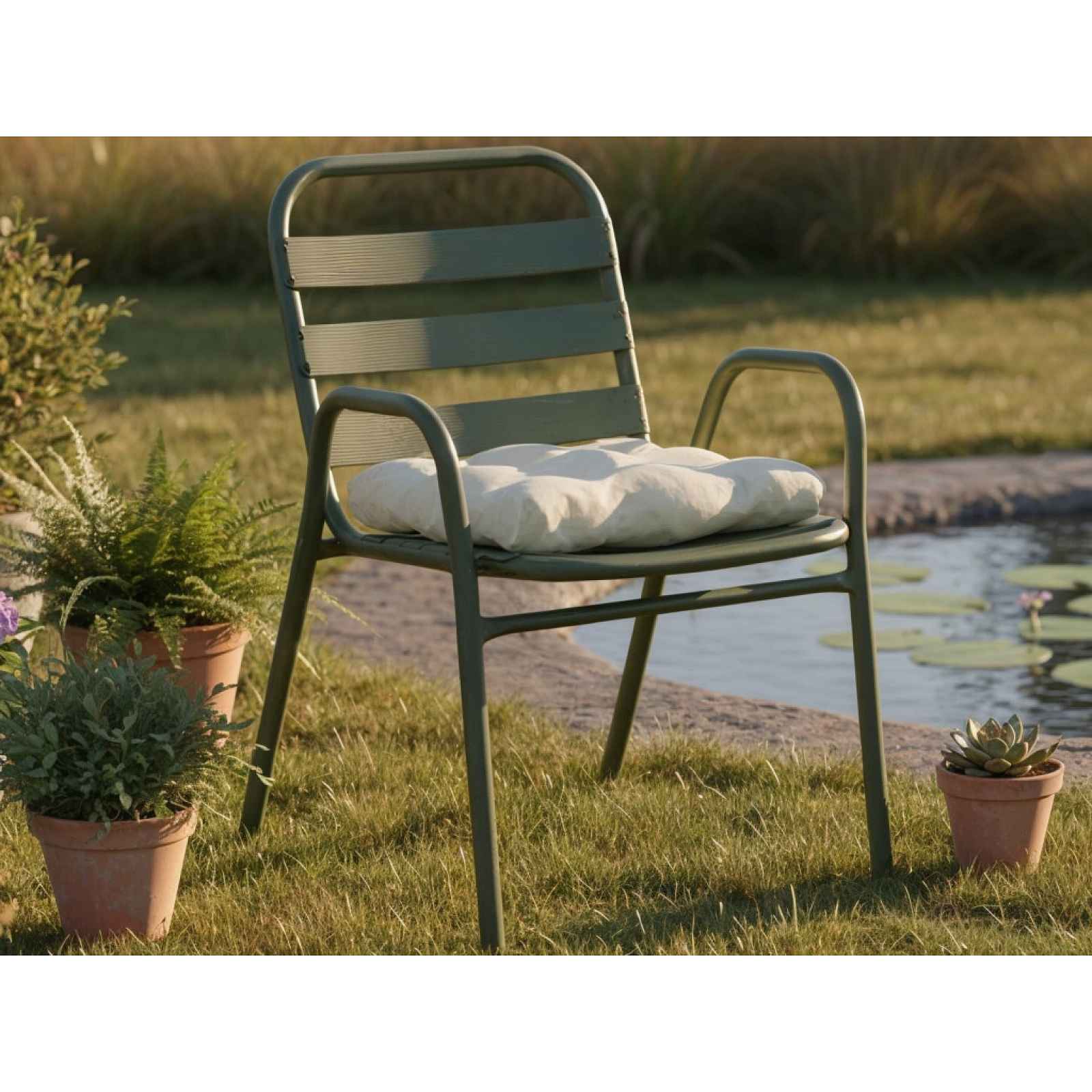 Zahradní židle má pohodlný tvar, stabilní konstrukci ze zeleného kovu a skvěle tak splyne s venkovním prostředím. Pasuje na zahradu i balkon. Zahradní židle má pohodlný tvar, stabilní konstrukci ze zeleného kovu a skvěle tak splyne s venkovním prostředím. Pasuje na zahradu i balkon a snadno ji zkombinujete s ostatním kovovým nábytkem. U této židle oceníte i možnost stohování více kusů na sebe – ušetříte tak okolní prostor při skladování. - stabilní konstrukce: kov - povrchová úprava: zelený lak - podnož/nohy: kruhový profil 24 mm - kovový sedák/opěradlo v optice prken - pohodlný tvar - boční područky - stohovatelné: možnost stohování více kusů židlí na sebe, ušetříte tak prostor při skladování - pro venkovní i vnitřní využití - využití samostatně anebo se zahradním stolem - doporučená nosnost do 110 kg - bez polštářku a dekorací - dodáváno smontované