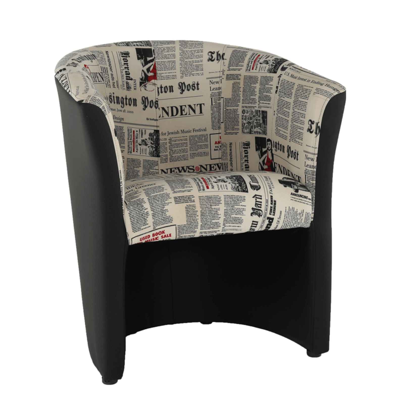 Moderní křeslo Materiál: látka potisk noviny/ černá ekokůže Rozměry (šxhxv): 65 x 60 x 77 cm Sezení (vxh): 45 x 45 cm Záruka 24 měsíců Dodáváno v demontu