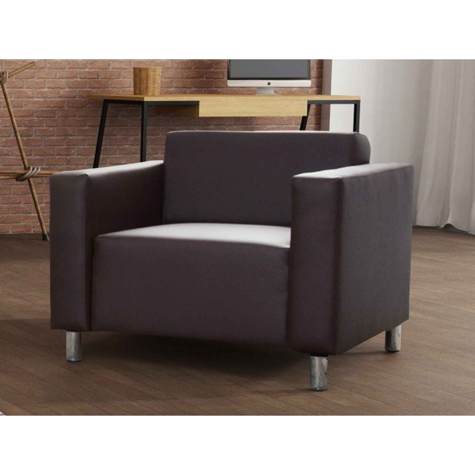 Křeslo Potahová látka: Madryt 128 = tmavě hnědá ekokůže Materiál: vlnité pružiny, polyuretanová pěna T25 Rozměry (dxšxv): 86 x 70 x 78 cm Výška sedu: 40 cm Hloubka sedu: 54 cm Nohy chromované. Záruka 24 měsíců.