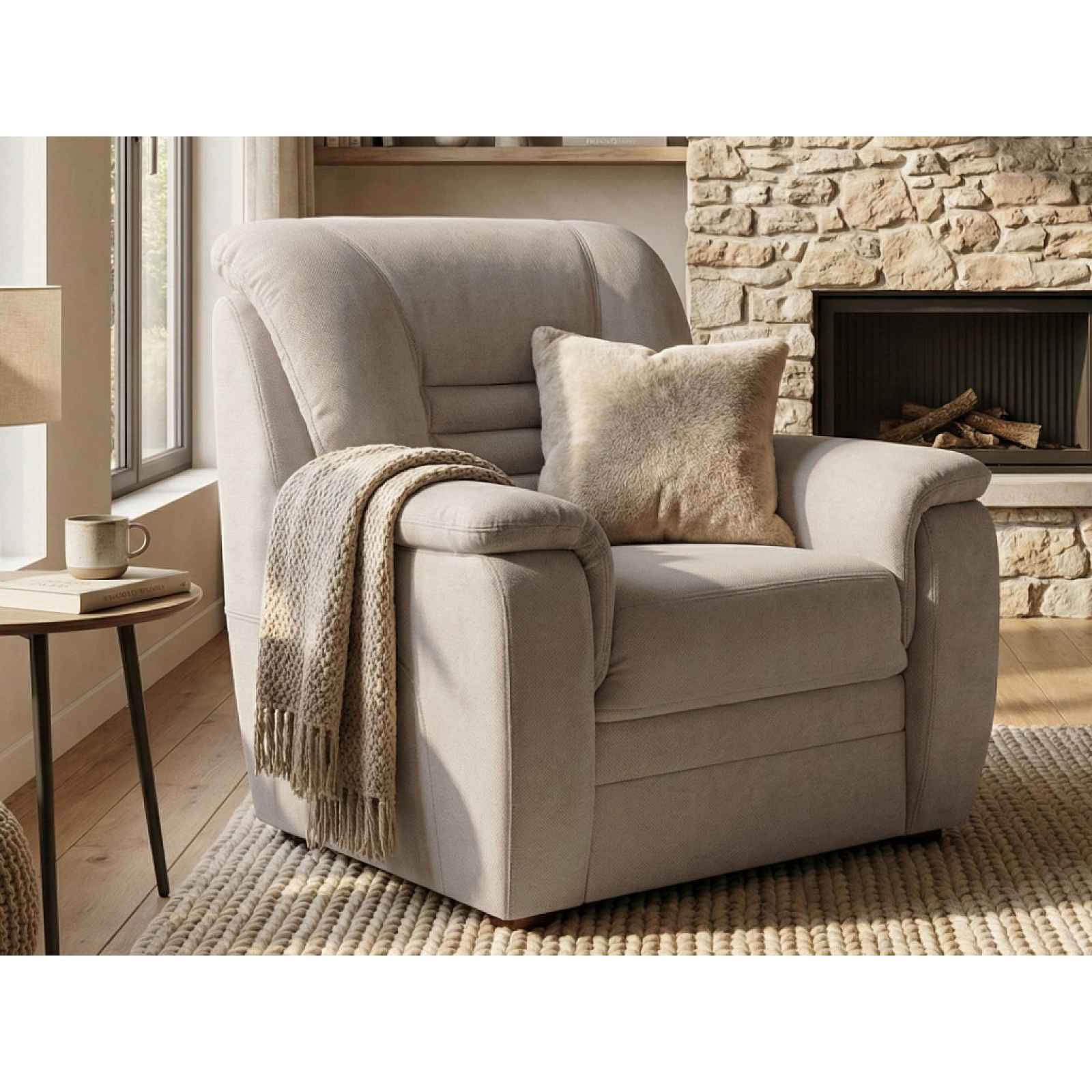 Prostorné křeslo v elegantním stylu má vysoké a komfortně tvarované opěradlo, které poskytuje kvalitní oporu při sezení. Tato křeslo je očalouněno strukturovanou látkou v barvě béžová a doplněno výrazným proševem. Navíc oceníte i velmi solidní zpracování. - konstrukce: dřevo, dřevotříska, překližka, kov - jádro: vlnovcové pružiny, polyuretanové pěny, čalounický flís - potah: látka 620 – strukturovaná žinilková látka, barva béžová (složení: 94% PES/6% nylon, otěruvzdornost: 40.000 cyklů) - včetně potažení zadní části (možné umístění v prostoru) - výrazný prošev potahu - boční područky – měkce polstrované - sedák: měkký komfort - opěrák: vysoký, anatomický tvar - kvalitní opora - nohy: masivní dřevo, moření - hnědý ořech - solidní zpracování - elegantní styl - dodáváno smontované