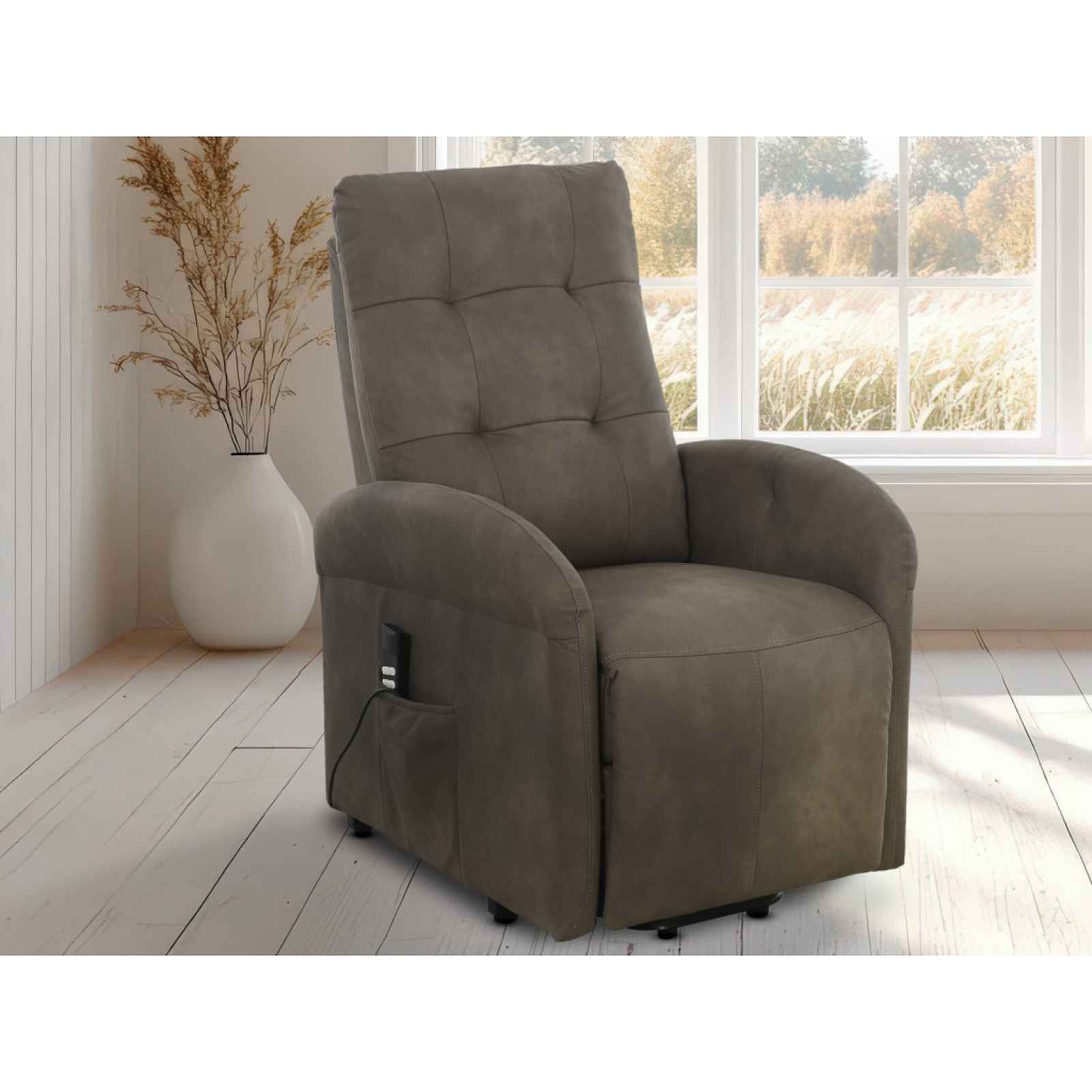 Komfortní křeslo s elektrickým polohováním můžete kdykoliv nastavit podle vlastní potřeby pomocí ovladače. Křeslo má vysokou nosnost a je vybaveno USB výstupem. Komfortní křeslo s elektrickým polohováním můžete kdykoliv nastavit podle vlastní potřeby pomocí ovladače. Navíc má vysokou nosnost a je vybaveno USB výstupem pro nabíjení smartphone nebo tabletu. Komfortně měkké křeslo je očalouněno látkou v optice kůže v barvě hnědá. Díky 2 zabudovaným tichým motorům a ovladači lze pomocí tlačítek polohovat opěradlo a výsuvnou podnožku, z křesla lze během chvíle vytvořit relaxační lehátko. Další příjemnou věcí je funkce na podporu vstávání, která je ideálním řešením pro osoby se sníženou pohyblivostí anebo starší osoby. Křeslo se díky svým kompaktním rozměrům změstí také do menšího prostoru. - konstrukce: kov, dřevovláknitá deska - jádro: polyuretanová pěna, taštičkové pružiny - potah: jemně strukturovaná látka v optice kůže, barva hnědá - včetně potažení zadní části (možné umístění i v prostoru) - prošev potahu - zaoblené úzké boční područky - sedák: komfortně měkký - opěrák: pohodlný tvar, vyšší pro oporu oblastni krku a hlavy - funkce polohování: elektrické motorové polohování (ovládání pomocí ovladače s kabelem, samostatné vyklápění podnožky + samostatné nastavení sklonu opěráku – až do polohy relaxačního lehátka) - zabudovaný 2 x motor - funkce pro podporu vstávání: elektrické motorové polohování – pomocí ovladače (snazší vstávání z křesla – postupné vyvýšení polohy sedáku a naklopení) - včetně ovladače na kabelu a přívodového kabelu - boční látková kapsa (uschování ovladače, novin, časopisů atd.) - nožky: přízemní kluzáky, černá kovová podnož - výška sedu: 46 cm - hloubka sedu: 50 cm - šířka sedu: 45 cm - výška opěradla: 60 cm - zvýšená doporučená nosnost do 150 kg - dodáváno v částečném demontu