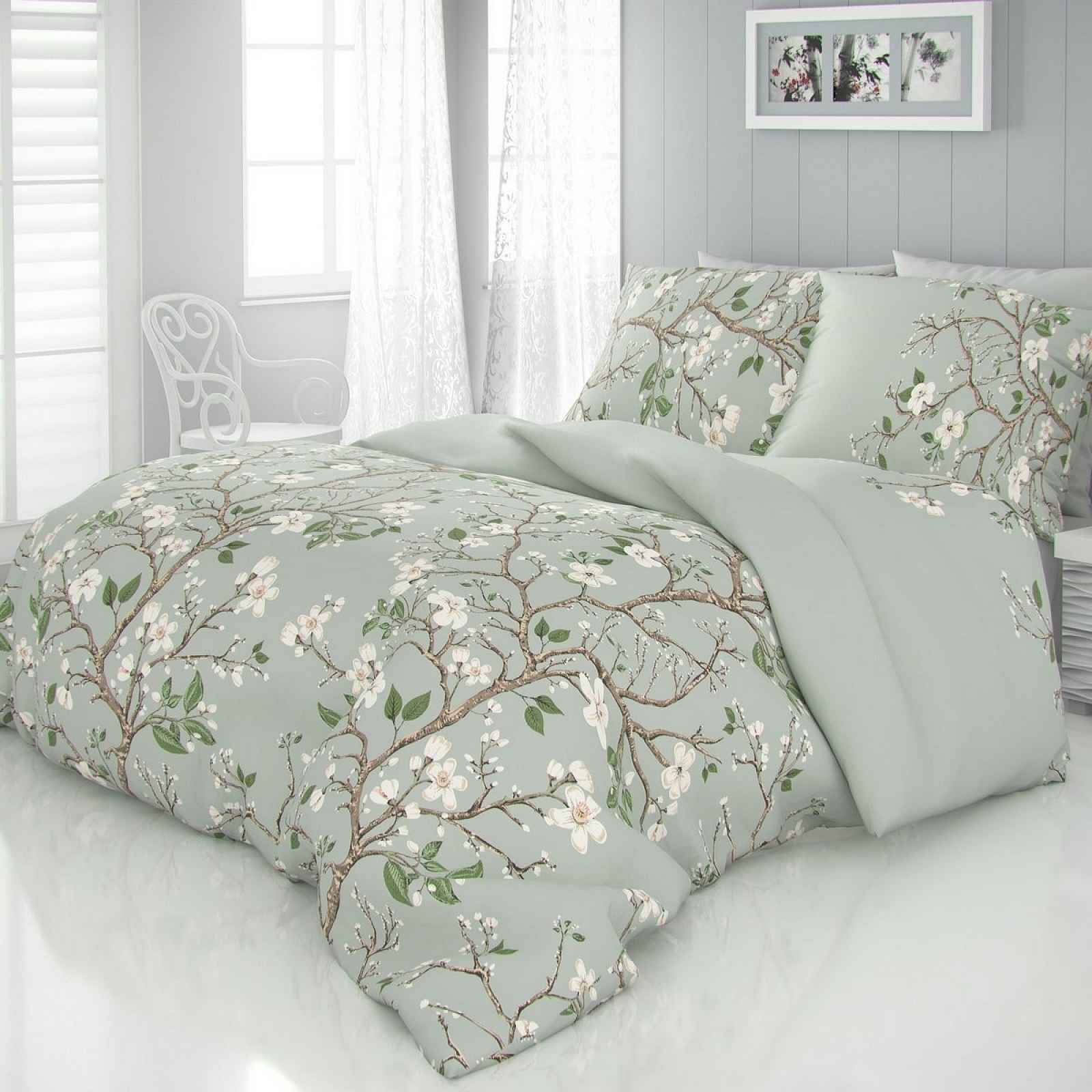 Saténové povlečení Jaro zelené představuje kolekci velmi moderních a nadčasových desénů. Saténové povlečení Jaro zelené kombinuje rozkvetlé větvičky a jemný podklad s pistáciovým nádechem. Saténové povlečení je vyrobené z bavlněné tkaniny atlasové vazby. Použitá tkanina je velmi kvalitní a zároveň jemná. Pevnost tkaniny je zachována. Povlečení je hřejivé a velmi příjemné na omak. Svůj exkluzivní povrch si bavlněný satén získává díky speciálnímu výrobnímu procesu, kterému se říká mercerování. Díky tomuto postupu se dosáhne zvýšení pevnosti materiálu a zvýraznění barev. Saténové povlečení je opatřeno zapínáním na zip s peckovým jezdcem. Zapínání není po celé šíři povlečení, je odšito 10 cm od kraje, aby se zabránilo vypadávání rohů přikrývky nebo polštáře. Povlečení má snadno žehlivou úpravu a nemačká se. Povlaky u polštářů jsou bez okrasného lemu. Povlečení je vyrobeno s rozměrovou rezervou 5 - 7 cm, po prvním vyprání dojde ke sražení materiálu na požadované rozměry. Vyrobené v České republice. Souprava obsahuje: 2x povlak na polštář 70 x 90 cm 1x povlak na přikrývku 240 x 220 cm