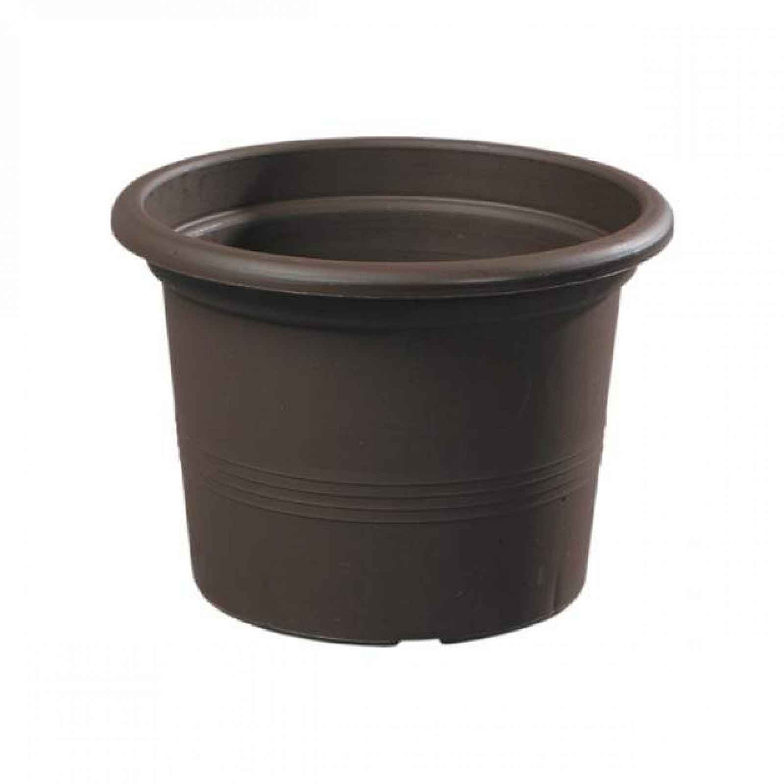 Hnědý plastový matný květník použitelný pro rostliny venku i v interiéru. Květník je v půdorysu kulatý, jemně směrem vzhůru kónický se zahnutým horním lemem směrem ven a s vylisovanými třemi úzkými proužky lehce pod prostředkem výšky květináče a to po celém jeho obvodu. Šířka: 11 cm, výška: 8 cm, hloubka: 11 cm.