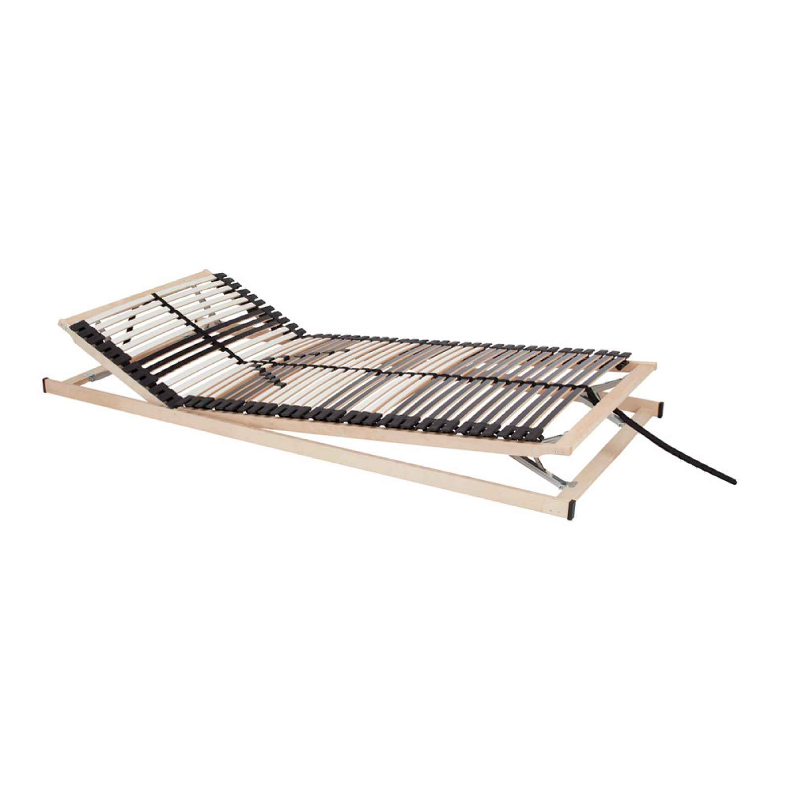 Rošt se 48 lamelami, s nastavitelnou tvrdostí, s polohovatelnou oblastí ramen a nohou, se středovým popruhem.Rozměr cca 140/200 cm, prodává se rozložený.