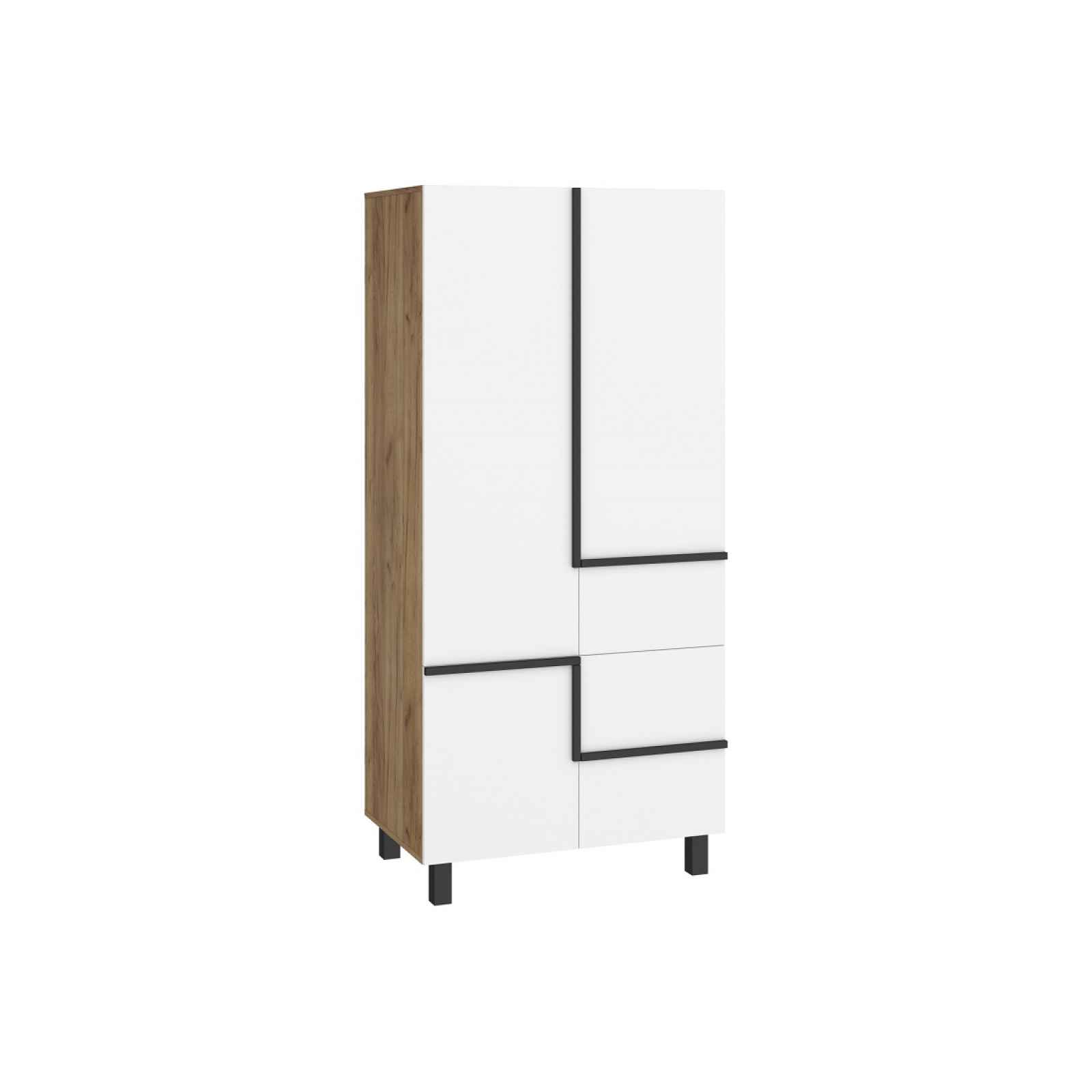Skříň je vybavená celkem třemi policemi a šatní tyčí. Barva: - craft zlatý/bílá - lišty a nožky: černá Rozměr (šxvxh): 90 x 195 x 59 cm Výška nožek: 12 cm Materiál: - lamino o síle 16 mm s ABS hranami - dřevěné nožky Skříň disponuje systémem tichého dovírání. Dodáváno v demontu. Záruka 5 let.