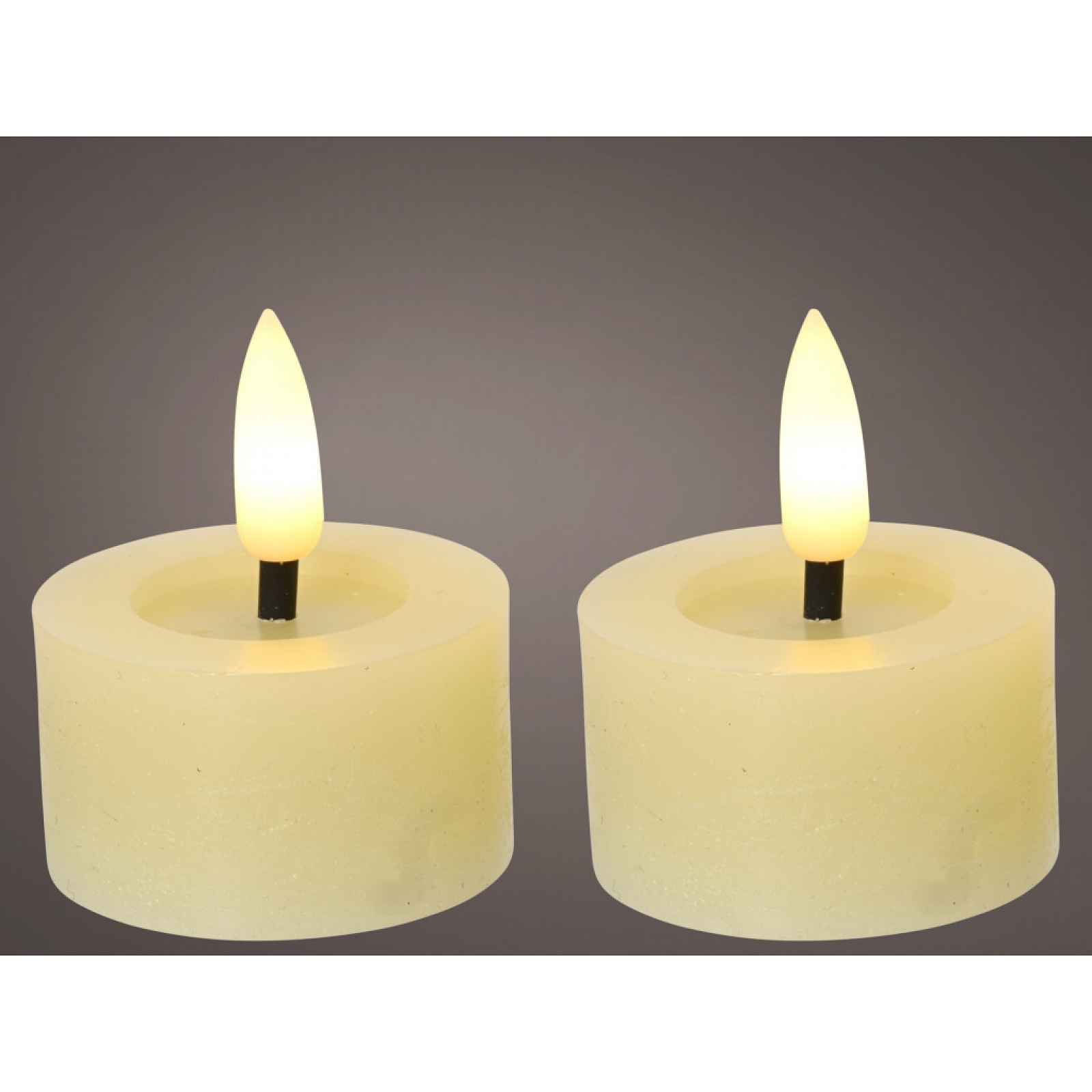 Sada 2 LED čajových svíček v krémové barvě s vnějším voskovým povrchem a realistickým plamínkem navodí příjemnou a bezpečnou atmosféru v každém domově. Sada 2 LED čajových svíček v krémové barvě vytvoří příjemnou a bezpečnou atmosféru v každém interiéru. Plochý horní okraj s voskovým povrchem spolu s realistickým efektem plamínku věrně napodobují vzhled klasických svíček, avšak bez rizika otevřeného ohně či kouře. Svíčky jsou napájené bateriemi, takže je snadno můžete umístit kamkoli. Vestavěný 6hodinový časovač se postará o pohodlný a úsporný provoz. - set obsahuje 2 ks - materiál: vosk, plast - barva: krémová - rozměr: 4,4x5,2 cm - LED světlo: teplá bílá s realistickým efektem plamínku - praktická funkce 6hodinového časovače - napájení: baterie – bezpečný a pohodlný bezdrátový provoz - připraveno k okamžitému použití s přiloženou baterií - bezpečná alternativa k tradičním svíčkám (bez kouře, ohně a vosku) - ideální dekorace pro Vánoce i celoroční zútulnění domova