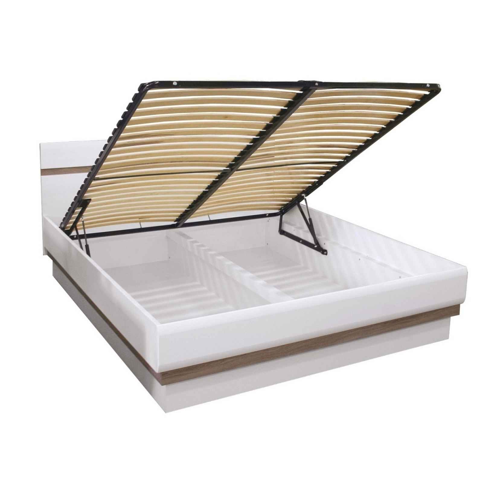 Postel 160x200 Barva: dub sonoma truflový/bílý lesk Rozměry (šxhxv): 166 x 206 x 94 cm Materiál: lamino, MDF Postel je dodávaná s roštem a úložným prostorem (ložná plocha 160 x 200 cm). V ceně postele není matrace. Dodáváno v demontu. Záruka 24 měsíců.