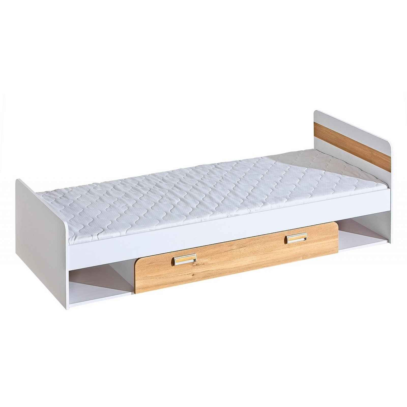 Systém se skládá z 16 prvků v různém barevném provedení. Tento široký výběr vám zaručí si sestavit nábytek podle svých představ. Celá řada se vyznačuje zaoblenými tvary. Barevné provedení: bílá/dub nash Dekorace je vytvořena z ABS pásky z PVC výrazné barvy. Nábytek je vyrobený z kvalitní laminátové desky o síle 16 - 18 mm. Plastové úchyty. Rozměry (šxhlxv): 84 x 198,5 x 61,5 cm. Ložná plocha: 80 x 195 cm. Rozměry zásuvky (šxhl): 110 x 76 cm Součástí postele je lamelový rošt a zásuvka na kolečkách. Dodání v demontu. Záruka 5 let.