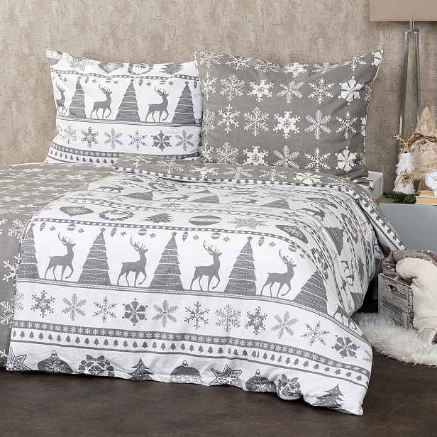 4Home Vánoční flanelové povlečení Christmas Time šedá, 140 x 220 cm, 70 x 90 cm