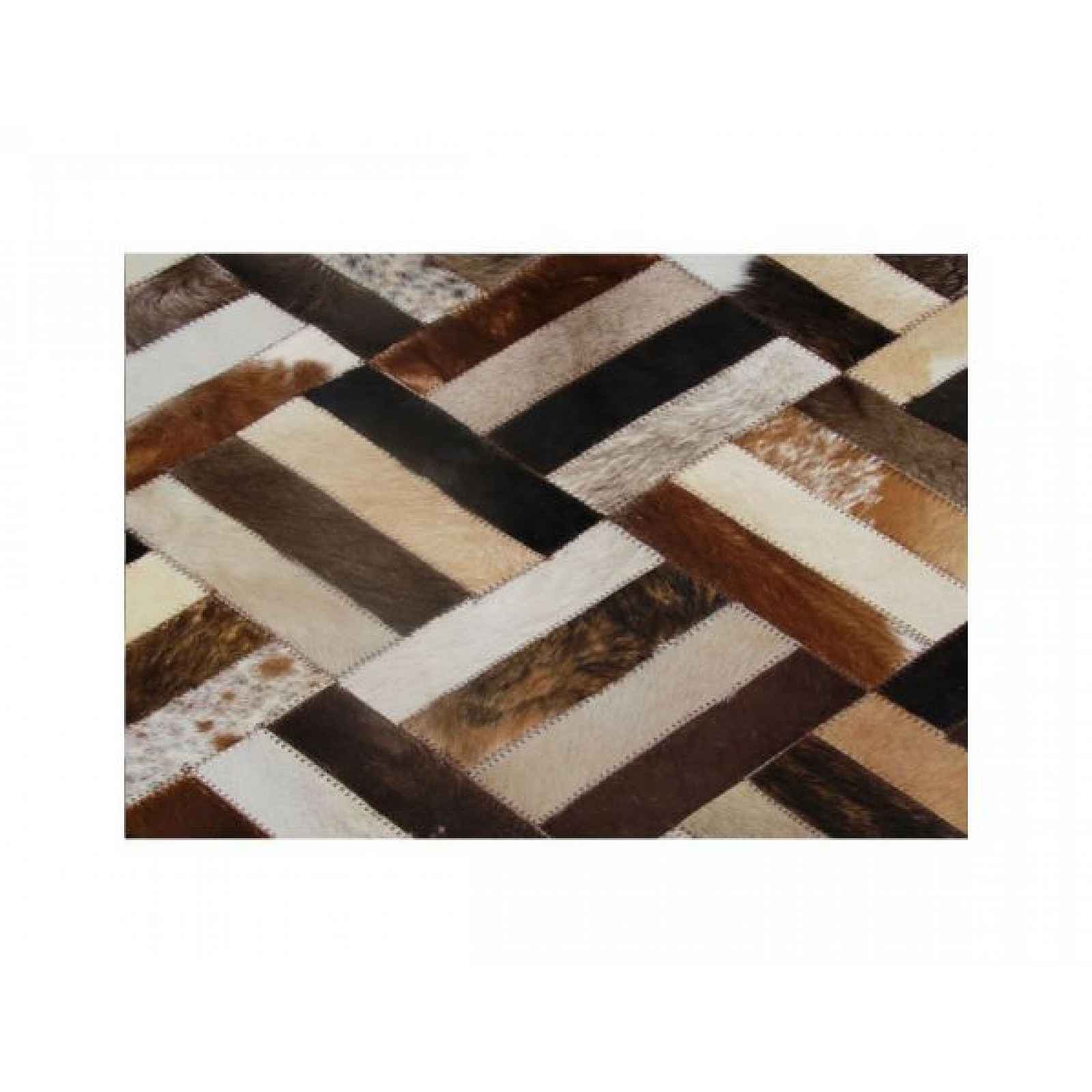 Luxusní kožený koberec Koža Typ2 o rozměru 70x140 cm s geometrickým vzorem patchwork 5x20 cm. Koberec z hovězí kůže je podšitý plstí. Vysoce kvalitní kusový koberec ruční výroby s moderním designem nabízíme ve více rozměrech za super cenu. Prohlédněte si i další vzory z naší rozsáhlé nabídky kožených koberců. Rozměry: - šířka 70 cm - délka 140 cm