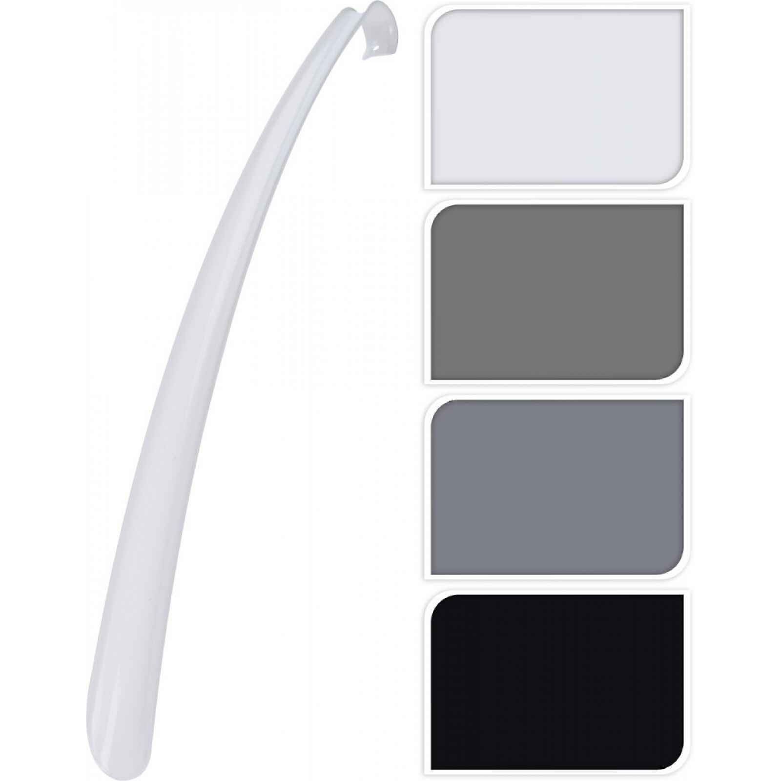 Dlouhá plastová lžíce na boty, která usnadní obouvání, je dodávána ve 4 různých barvách. Délka 57 cm. - !! dodáváno v různých barvách !! - pouze 1 ks - obouvací lžíce - materiál: plast - barva: bílá/černá/stříbrná/šedá (dle aktuální skladové zásoby, nelze ovlivnit dodávku) !! - délka: 57 cm - šířka: 4,5 cm - očko pro zavěšení - pevná a praktická, zejména u vysokých bot (např. kozačky) - díky lžíci se prodlouží životnost obuvi (boty se při obouvání nepoškodí)