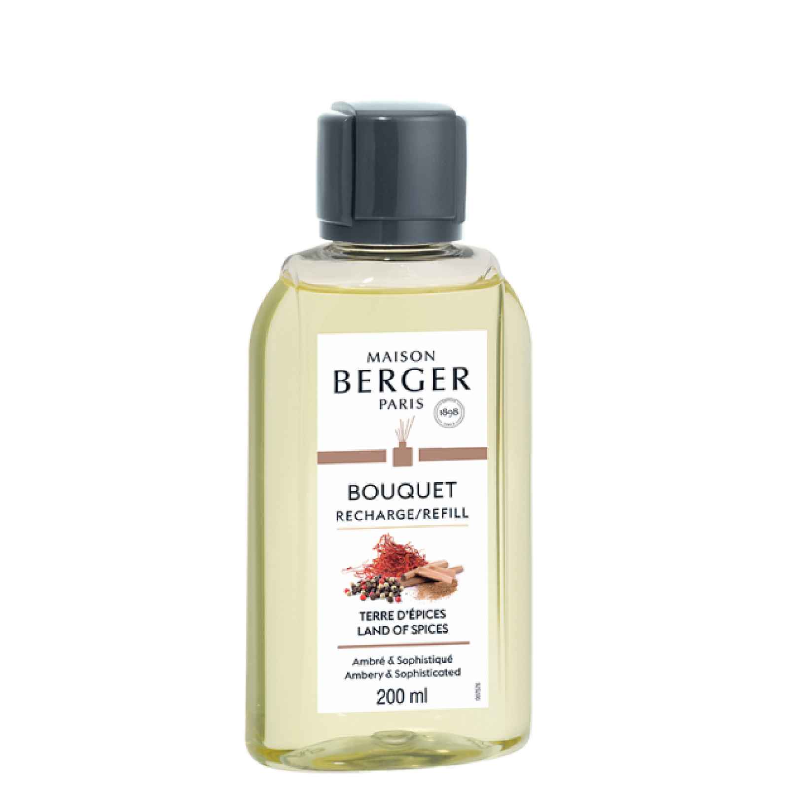 Orientální parfém pro aroma difuzéry Země koření francouzské značky Maison Berger o objemu 200 ml. Tento chameleon mezi vůněmi se přizpůsobí většině interiérů. Ve vysokých tónech mísí elegantní vůni růžového pepře s hřebíčkem, ve středních květinových tónech ucítíte vůni černé růže okořeněnou šafránem a skořicí, jenž pak v základu zahřívají pižmo s pačuli.