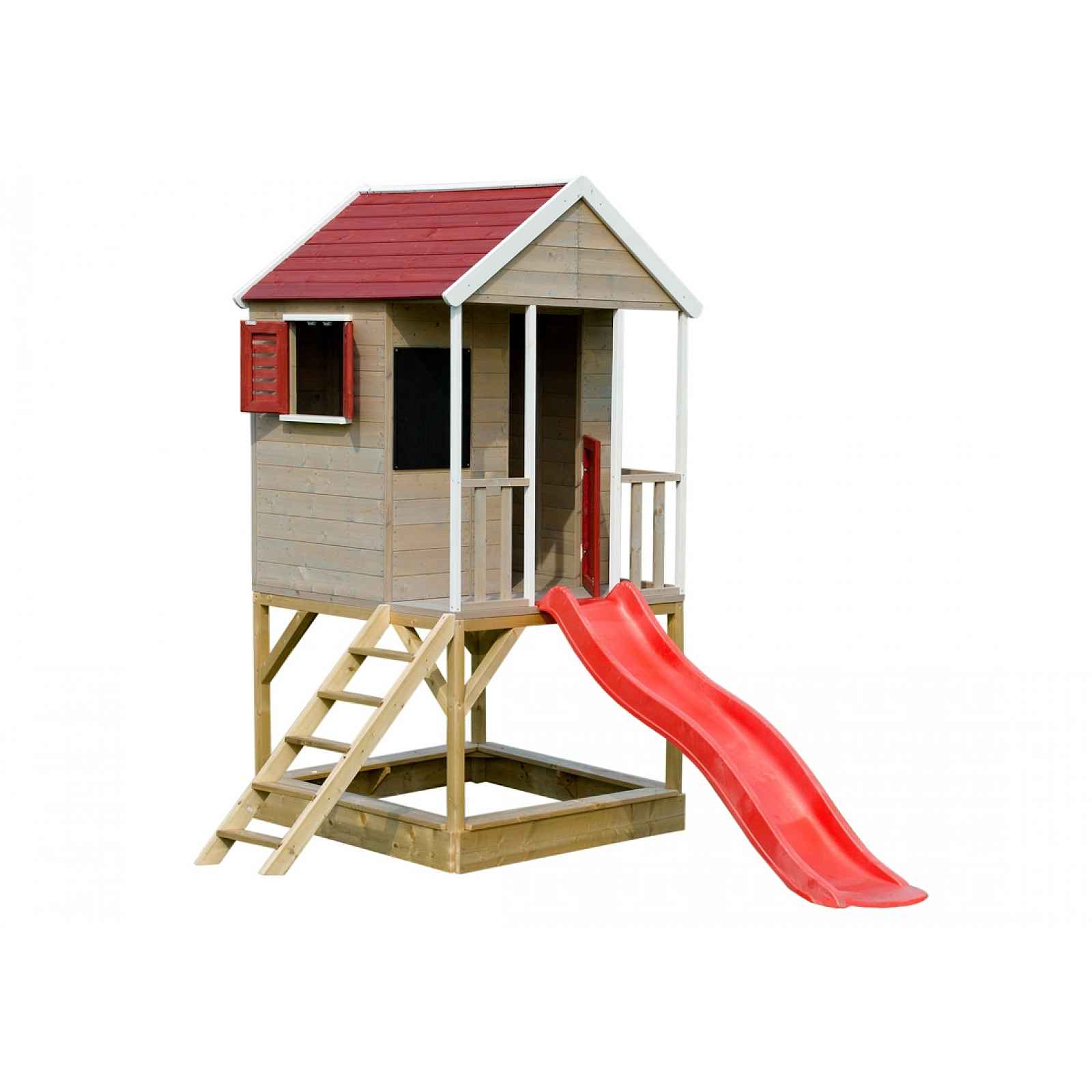 Dětský dřevěný domeček "veranda" se skluzavkou. Domeček je na vyvýšené podestě, má podlahu a zastřešenou verandu. Radost jim udělá nejen tabule, která je vhodná pro psaní a malování, ale i skluzavka a pískoviště se 4-mi sedátky. Domeček je dodáván v rozloženém stavu z prefabrikovaných dílů včetně spojovacího materiálu. Celé stěny a podlaha, které stačí sešroubovat k sobě. Pouze střecha se sestavuje z jednotlivých prken, které do sebe zapadají. Podesta je dodávána též v rozloženém stavu (jednotlivé trámy). Dřevo je povrchově ošetřeno ochranným nátěrem. Certifikát FSC® Produkt disponuje certifikátem FSC®, který zaručuje, že při výrobě bylo šetrně zacházeno s přírodními zdroji. Organizace Forest Stewardship Council obecně podporuje ekologické, sociálně prospěšné a ekonomicky životaschopné obhospodařování lesů. Obsah balení: zastřešená veranda podlaha poloviční dveře otevíratelné okenice tabule pro psaní a malování vnitřní úložný prostor ve štítu střechy skluzavka (délka 175 cm) pískoviště se 4-mi sedátky dřevěné schůdky Výhody dětských hřišť Kvalitní materiály Veškeré komponenty jsou vyrobeny z robustního plastu, odolného kovu a borovicového dřeva, které je povrchově ošetřeno proti nepříznivým vlivům počasí. Zábava pro všechny Hřiště se skládají z rozličných prvků v podobě domečků, věží, skluzavek, houpaček, žebříků, lezeckých stěn, šplhacích lan a tyčí. Stačí si vybrat vhodnou sestavu podle věku dítěte. Bezpečnost Bezstarostné užívání je pro nás prioritou, proto všechna dětská hřiště prošla náročnými testy jakosti i bezpečnosti a splňují normy EN 71 Bezpečnosti hraček. Technické parametry: dřevěná střecha není určeno pro komerční účely vyrobeno v EU splňuje normu EN-71-1.2.3.8. rozměry: 280 x 197 x 242 cm výška podesty 90 cm pro děti od 3 let nosnost: 50 kg materiál: dřevo (druh dřeva: Severský smrk) Je určeno pro venkovní použití. Varování: Pouze pro domácí použití.