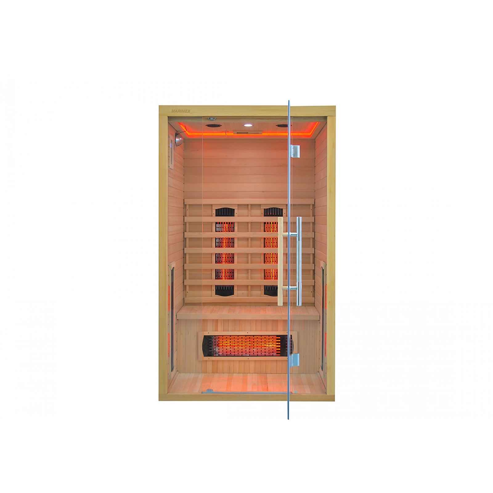 Infrasauna Marimex POPULAR 2003 L je vhodná až pro 2 osoby. Výhodou je funkce LED harmony, díky které si užijete relaxaci užitím tlumeného uklidňujícího barevného spektra LED osvětlení. Do výbavy infrasauny se řadí také rádio s mp3 přehrávačem a bluetooth, střešní ventilace a teplotní senzor. V infrasauně je rozmístěno 5 redlight topidel. Redlight topidla pracují s povrchovou teplotou 250 až 300 stupňů Celsia. Vlastnosti infrasauny Marimex POPULAR 2003 L. LED Harmony. LED Harmony zajišťuje přívětivé osvětlení uvnitř sauny. Díky barevnému LED světlu vytvoříte při saunování příjemnou atmosféru, která vás zklidní a napomůže relaxaci. Barevná terapie podporuje psychickou pohodu, pomáhá odbourávat stres a zlepšuje náladu. Tlumené světlo zároveň působí blahodárně na unavené oči a tělo, čímž umocňuje celkový zážitek ze saunování. LED Harmony kombinuje estetiku a wellness efekt v jeden harmonický celek. Ovládání přes aplikaci. Mějte svou saunu pod kontrolou odkudkoliv. Díky integrovanému Wi-Fi modulu můžete vzdáleně měnit nastavení přes mobilní aplikaci. Snadno nastavíte teplotu, osvětlení, topidla nebo hudbu – vše, co byste běžně ovládali na displeji sauny. Aplikaci lze propojit i s chytrými domácnostmi, takže ovládání se stane součástí vašeho běžného komfortu. Rádio s bluetooth. Rádio s bluetooth posune relaxační zážitek na novou úroveň. Díky bluetooth reproduktorům si můžete snadno přehrát oblíbenou hudbu, podcasty nebo relaxační zvuky přímo z telefonu, a vytvořit tak atmosféru přesně podle vašich představ. Hudba pomáhá odbourávat stres, zlepšuje náladu a může dokonce podpořit uvolnění svalů během saunování. Bezdrátové propojení přes bluetooth je pohodlné, neřešíte žádné kabely a vše ovládáte prostřednictvím vašeho telefonu. Rádio s bluetooth snadno promění každé saunování v dokonalý odpočinek. Materiál. Hemlock: je odolné dřevo z kanadského jedlovce. Jeho světlehnědý až růžový tón vytváří jedinečný a charakteristický obraz. Topidla. V infrasauně je rozmístěno 5 redlight topidel. Redlight topidla pracují s povrchovou teplotou 250 až 300 stupňů Celsia. Ve srovnání s karbonovými se redlight zářiče zahřejí velice rychle. Nevýhodou může být vyšší spotřeba, ale vždy záleží na typu infrasauny. Pořizovací náklady tohoto typu zářičů jsou nižší, životnost je cca 8 000 hodin. Při běžném saunování (3x týdně 45 min) vydrží cca 60 let. Redlight topidla dosahují téměř okamžitě požadované teploty. Jsou tvořeny trubicemi z křemičitého skla, které kromě intenzivního sálavého tepla vyzařují také světlo umocňující jejich blahodárné terapeutické účinky. Vyzařují teplo na krátkých vlnových délkách. Topidla - technické informace. Typ topidla Hodnota EMF IR-A IR-B IR-C Vlnová délka Hloubka proniknutí do kůže Karbonová 30-80 mGS 0% 0% 100% 5.6-15 µm 2 mm Keramická 30-80 mGS 0% 0% 100% 5.6-15 µm 2 mm Red-Light 30-80 mGS 0% 10% 90% 5.6-15 µm 3-5 mm Zdraví. Pravidelné používání infrasaun pozitivně ovlivňuje lidské zdraví. Saunování snižuje bolest kloubů a zad, napomáhá od menstruačních bolestí, léčbě kožních ekzémů a lupénky, zvyšuje prokrvení, působí protizánětlivě nebo podporuje boj proti celulitidě. V neposlední řadě navozuje psychickou pohodu, snižuje svalový spasmus a posiluje kardiovasklulární kondici. Infrasaunu je možné používat i v případech, kde zdravotní stav nedovoluje použití klasické sauny. Samotné saunování navozuje příjemný pocit pohody, uvolnění a relaxace. Infrasauny jsou natolik bezpečné, že se jejich technologie používá i v dětských inkubátorech. Certifikát FSC ®. Produkt splňuje podmínky certifikace Forest Stewardship Council (FSC). Tato mezinárodní certifikace zaručuje, že dřevo pochází z lesů, které jsou obhospodařovány šetrně a zodpovědně. Cílem systému je chránit přírodu, podporovat spravedlivé pracovní podmínky a zajistit dlouhodobě udržitelné hospodaření s lesy. Nákupem tohoto produktu tak přispíváte k ochraně přírody a podpoře šetrného lesního hospodaření. Výhody infrasaun Marimex. Zdravotní přínos. Pocení a detoxikace probíhá již při 45-50° C. Díky tomu je proces infrasaunování přístupnější a vhodný i pro děti. Nízká spotřeba. Infrasauna se zapojuje do zásuvky o příkonu 230 V. Spotřeba je velmi podobná jako spotřeba elektrické žehličky. Snadná instalace. Stavbu infrasauny hravě zvládnou dvě osoby do jedné hodiny. Jediné, co bude k montáži potřeba, je šroubovák. Další výhody infrasaun Marimex. Spotřeba. Provoz infrasaun je ve srovnání s klasickými saunami výrazně úspornější. Hlavním důvodem je nižší provozní teplota. Infračervené záření proniká hluboko do tkáně, proto není třeba saunovací proceduru opakovat v několika cyklech za sebou, jako tomu je u finské sauny. Náklady na jeden saunovací cyklus. Náklady na provoz Průměrný příkon Spotřeba jednoho saunovacího cyklu (30 min. při 55°C) Varná konvice 2 kW 0,16 kW (ohřátí 1,5 l. vody, 5 minut) Infrasauna pro 1 osobu 1,4 kW 0,7 kWh Žehlička 2 kW 1 kWh (30 min. žehlení) Infrasauna pro 2 osoby 2 kW 1 kWh Infrasauna pro 3 osoby 2,3 kW 1,2 kWh Infrasauna pro 4 osoby 3 kW 1,5 kWh Umístění infrasauny. Infrasauna je určena k používání v interiéru. Měla by být postavena ve vnitřních prostorách, ve kterých teplota neklesá pod 15 °C. Ideálně například v ložnici, koupelně, domácím fitness, v suterénu, či technické místnosti. Jako vhodný podklad slouží jakýkoliv rovný povrch. Mohou to být dlaždice, lino, koberec, nebo například parkety. Infrasauna není konstruována pro umístění do zahradního domku, pergoly ani ch