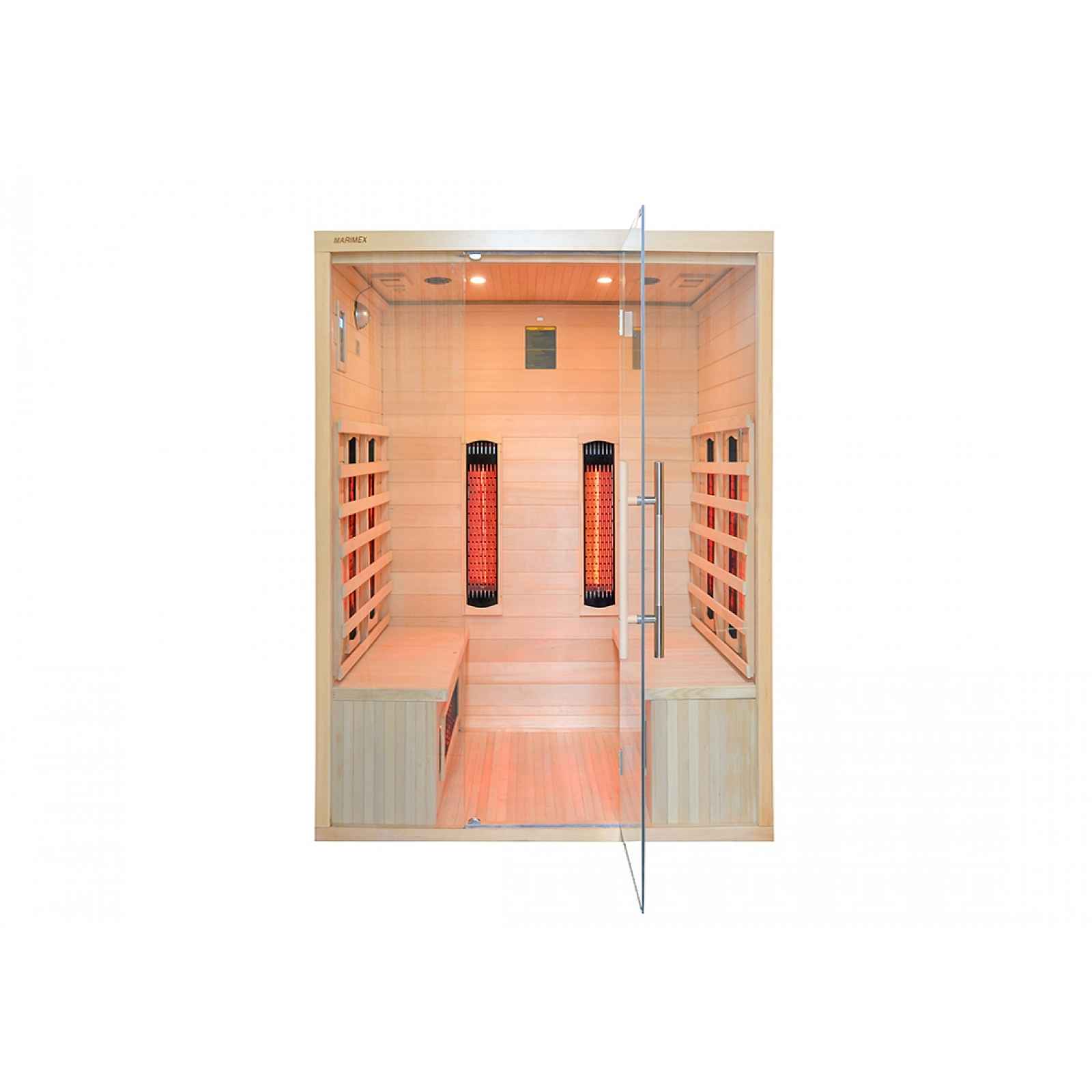 Velká infrasauna Marimex POPULAR 4003 XXL má ve výbavě 2 lavice a je vhodná až pro 4 osoby. Výhodou je funkce LED harmony, díky které si užijete relaxaci užitím tlumeného uklidňujícího barevného spektra LED osvětlení. Do výbavy infrasauny se řadí také rádio s mp3 přehrávačem a bluetooth, střešní ventilace a teplotní senzor.V infrasauně je rozmístěno 8 redlight topidel. Redlight topidla pracují s povrchovou teplotou 250 až 300 stupňů Celsia.Vlastnosti infrasauny Marimex POPULAR 4003 XXLLED HarmonyFunkce LED harmony představuje krok k hlubšímu prožitku z relaxace užitím tlumeného uklidňujícího barevného spektra LED osvětlení. Výhody infrasaun MarimexZdravotní přínosPocení a detoxikace probíhá již při 45-50° C. Díky tomu je proces infrasaunování přístupnější a vhodný i pro děti.Nízká spotřebaInfrasauna se zapojuje do zásuvky o příkonu 230 V. Spotřeba je velmi podobná jako spotřeba elektrické žehličky.Snadná instalaceStavbu infrasauny hravě zvládnou dvě osoby do jedné hodiny. Jediné, co bude k montáži potřeba, je šroubovák.DřevoHemlock: je odolné dřevo z kanadského jedlovce. Jeho světlehnědý až růžový tón vytváří jedinečný a charakteristický obraz.TopidlaV infrasauně je rozmístěno 8 redlight topidel. Redlight topidla pracují s povrchovou teplotou 250 až 300 stupňů Celsia. Ve srovnání s karbonovými se redlight zářiče zahřejí velice rychle. Nevýhodou může být vyšší spotřeba, ale vždy záleží na typu infrasauny. Pořizovací náklady tohoto typu zářičů jsou nižší, životnost je cca 8 000 hodin. Při běžném saunování (3x týdně 45 min) vydrží cca 60 let. Redlight topidla dosahují téměř okamžitě požadované teploty. Jsou tvořeny trubicemi z křemičitého skla, které kromě intenzivního sálavého tepla vyzařují také světlo umocňující jejich blahodárné terapeutické účinky. Vyzařují teplo na krátkých vlnových délkách. Topidla - technické informaceTyp topidlaHodnota EMFIR-AIR-BIR-CVlnová délkaHloubka proniknutí do kůžeKarbonová30-80 mGS0%0%100%5.6-15 µm2 mmKeramická30-80 mGS0%0%100%5.6-15 µm2 mmRed-Light30-80 mGS0%10%90%5.6-15 µm3-5 mmZdraví Pravidelné používání infrasaun pozitivně ovlivňuje lidské zdraví. Saunování snižuje bolest, omezuje ztuhlost kloubů, zvyšuje prokrvení a působí protizánětlivě. V neposlední řadě navozuje psychickou pohodu, snižuje svalový spasmus a posiluje kardiovasklulární kondici. Infrasaunu je možné používat i v případech, kde zdravotní stav nedovoluje použití klasické sauny. Samotné saunování navozuje příjemný pocit pohody, uvolnění a relaxace. Infrasauny jsou natolik bezpečné, že se jejich technologie používá i v dětských inkubátorech. Další výhody infrasaun MarimexSpotřeba Provoz infrasaun je ve srovnání s klasickými saunami výrazně úspornější. Hlavním důvodem je nižší provozní teplota. Infračervené záření proniká hluboko do tkáně, proto není třeba saunovací proceduru opakovat v několika cyklech za sebou, jako tomu je u finské sauny. Náklady na jeden saunovací cyklusNáklady na provozPrůměrný příkonSpotřeba jednoho saunovacího cyklu(30 min. při 55°C)Varná konvice2 kW0,16 kW (ohřátí 1,5 l. vody, 5 minut)Infrasauna pro 1 osobu1,4 kW0,7 kWhŽehlička2 kW1 kWh (30 min. žehlení)Infrasauna pro 2 osoby2 kW1 kWhInfrasauna pro 3 osoby2,3 kW1,2 kWhInfrasauna pro 4 osoby3 kW1,5 kWhUmístění infrasaunyInfrasauna je určena k používání v interiéru. Měla by být postavena ve vnitřních prostorách, ve kterých teplota neklesá pod 15 °C. Ideálně například v ložnici, koupelně, domácím fitness, v suterénu, či technické místnosti. Jako vhodný podklad slouží jakýkoliv rovný povrch. Mohou to být dlaždice, lino, koberec, nebo například parkety. Infrasauna není konstruována pro umístění do zahradního domku, pergoly ani chladného sklepa. MontážMontáž infrasauny je rychlá a jednoduchá. K přichycení jednotlivých částí se používají kufrové spony, čepy nebo klasické šrouby. Elektroinstalace je již namontovaná od výrobce, pouze stačí propojit kabeláž pomocí zásuvek a konektorů. Vše je přehledně označené.