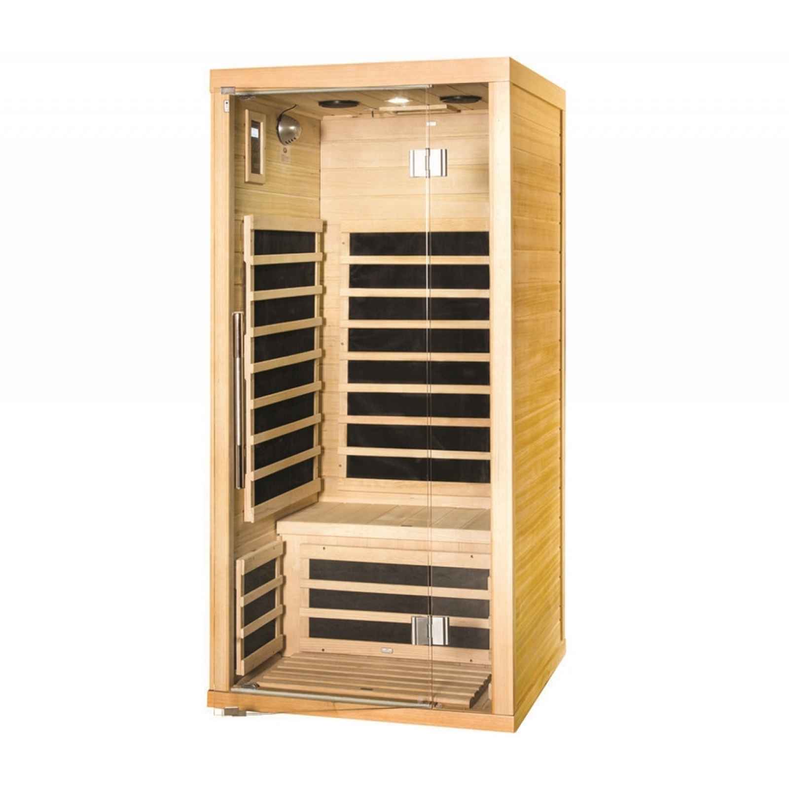 Infrasauna Marimex Trendy 1001 M se díky svému designu hodí do každého interiéru. Při výrobě bylo použito kvalitního dřeva kanadského jedlovce - hemlocku. Infrasauna Marimex Trendy 2001 M umožňuje vychutnat kouzlo saunování jedné osobě. Malé rozměry dovolují infrasaunu umístit v rodinném domě i prostornějším bytě. Skleněné dveře umožňují pohodlný výhled po okolí sauny. Součástí výbavy je ionizér a rádio/mp3 přehrávač. Tato infrasauna obsahuje karbonové podlahové topidlo. Hloubka lavice v infrasauně jsou 43 cm. Vlastnosti infrasauny Marimex TRENDY 1001 M. LED Harmony. LED Harmony zajišťuje přívětivé osvětlení uvnitř sauny. Díky barevnému LED světlu vytvoříte při saunování příjemnou atmosféru, která vás zklidní a napomůže relaxaci. Barevná terapie podporuje psychickou pohodu, pomáhá odbourávat stres a zlepšuje náladu. Tlumené světlo zároveň působí blahodárně na unavené oči a tělo, čímž umocňuje celkový zážitek ze saunování. LED Harmony kombinuje estetiku a wellness efekt v jeden harmonický celek. Ovládání přes aplikaci. Mějte svou saunu pod kontrolou odkudkoliv. Díky integrovanému Wi-Fi modulu můžete vzdáleně měnit nastavení přes mobilní aplikaci. Snadno nastavíte teplotu, osvětlení, topidla nebo hudbu – vše, co byste běžně ovládali na displeji sauny. Aplikaci lze propojit i s chytrými domácnostmi, takže ovládání se stane součástí vašeho běžného komfortu. Rádio s bluetooth. Rádio s bluetooth posune relaxační zážitek na novou úroveň. Díky bluetooth reproduktorům si můžete snadno přehrát oblíbenou hudbu, podcasty nebo relaxační zvuky přímo z telefonu, a vytvořit tak atmosféru přesně podle vašich představ. Hudba pomáhá odbourávat stres, zlepšuje náladu a může dokonce podpořit uvolnění svalů během saunování. Bezdrátové propojení přes bluetooth je pohodlné, neřešíte žádné kabely a vše ovládáte prostřednictvím vašeho telefonu. Rádio s bluetooth snadno promění každé saunování v dokonalý odpočinek. Materiál. Hemlock: je odolné dřevo z kanadského jedlovce. Jeho světlehnědý až růžový tón vytváří jedinečný a charakteristický obraz. Topidla. V infrasauně je rozmístěno sedm karbonových topidel. Ve srovnání s jinými typy karbonové zářiče tvoří tenké pásy, které vyvinou povrchovou teplotu 70 - 170 stupňů Celsia. Karbonové zářiče dosáhnou maximální teploty pomaleji, naproti tomu mají delší životnost (při saunování 3x týdně cca 90 let). Tento typ zářičů prohřeje lidské tělo rovnoměrně a do hloubky. Plného využití potenciálu infrasauny docílíte nastavením teploty na maximální teplotu, kterou umožňuje nastavit řídící panel. Zajistíte tak provoz infračervených zářičů téměř po celou dobu saunovacího procesu.Míra účinnosti infrasaunování závisí na intenzitě infračerveného záření, nikoliv jen na teplotě vzduchu. Samotná teplota vzduchu v infrasauně se při nastavení na maximum pohybuje kolem 45 - 60°C. Při stanovení nižší cílové temperatury se infračervené zářiče vypnou, jakmile teplota vzduchu dosáhne požadovaného stupně. Topidla - technické informace. Typ topidla Hodnota EMF IR-A IR-B IR-C Vlnová délka Hloubka proniknutí do kůže Karbonová 30-80 mGS 0% 0% 100% 5.6-15 µm 2 mm Keramická 30-80 mGS 0% 0% 100% 5.6-15 µm 2 mm Red-Light 30-80 mGS 0% 10% 90% 5.6-15 µm 3-5 mm Zdraví. Pravidelné používání infrasaun pozitivně ovlivňuje lidské zdraví. Saunování snižuje bolest kloubů a zad, napomáhá od menstruačních bolestí, léčbě kožních ekzémů a lupénky, zvyšuje prokrvení, působí protizánětlivě nebo podporuje boj proti celulitidě. V neposlední řadě navozuje psychickou pohodu, snižuje svalový spasmus a posiluje kardiovasklulární kondici. Infrasaunu je možné používat i v případech, kde zdravotní stav nedovoluje použití klasické sauny. Samotné saunování navozuje příjemný pocit pohody, uvolnění a relaxace. Infrasauny jsou natolik bezpečné, že se jejich technologie používá i v dětských inkubátorech. Certifikát FSC ®. Produkt splňuje podmínky certifikace Forest Stewardship Council (FSC). Tato mezinárodní certifikace zaručuje, že dřevo pochází z lesů, které jsou obhospodařovány šetrně a zodpovědně. Cílem systému je chránit přírodu, podporovat spravedlivé pracovní podmínky a zajistit dlouhodobě udržitelné hospodaření s lesy. Nákupem tohoto produktu tak přispíváte k ochraně přírody a podpoře šetrného lesního hospodaření. Výhody infrasaun Marimex. Zdravotní přínos. Pocení a detoxikace probíhá již při 45-50° C. Díky tomu je proces infrasaunování přístupnější a vhodný i pro děti. Nízká spotřeba. Infrasauna se zapojuje do zásuvky o příkonu 230 V. Spotřeba je velmi podobná jako spotřeba elektrické žehličky. Snadná instalace. Stavbu infrasauny hravě zvládnou dvě osoby do jedné hodiny. Jediné, co bude k montáži potřeba, je šroubovák. Další výhody infrasaun Marimex. Spotřeba. Provoz infrasaun je ve srovnání s klasickými saunami výrazně úspornější. Hlavním důvodem je nižší provozní teplota. Infračervené záření proniká hluboko do tkáně, proto není třeba saunovací proceduru opakovat v několika cyklech za sebou, jako tomu je u finské sauny. Náklady na jeden saunovací cyklus. Náklady na provoz Průměrný příkon Spotřeba jednoho saunovacího cyklu (30 min. při 55°C) Varná konvice 2 kW 0,16 kW (ohřátí 1,5 l. vody, 5 minut) Infrasauna pro 1 osobu 1,4 kW 0,7 kWh Žehlička 2 kW 1 kWh (30 min. žehlení) Infrasauna pro 2 osoby 2 kW 1 kWh Infrasauna pro 3 osoby 2,3 kW 1,2 kWh Infrasauna pro 4 osoby 3 kW 1,5 kWh Umístění infrasauny. Infrasauna je určena k používání v interiéru. Měla by být postavena ve vnitřn