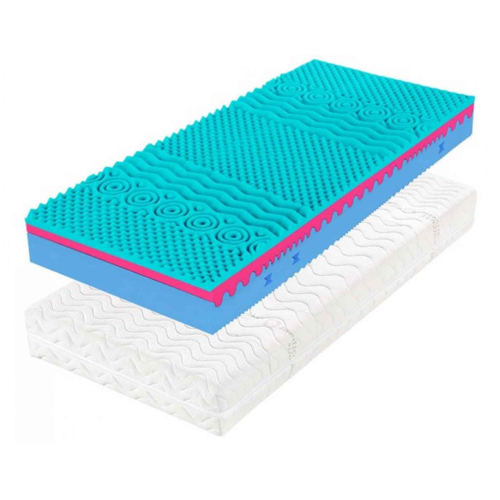 Vzdušný nelepený spoj uprostřed matrace ještě zvyšuje proudění vzduchu. Ramenní zóny chrání tělo při spánku na boku – nedochází k přeležení ramene.Měkčí paměťová (masážní profil) a tužší modrá strana.Pratelný (95 °C) a snímatelný funkční potah MEDICOTT Silverguard – prošívaný, oboustranně opatřený klimatizační vrstvou dutých vláken pro optimální termoregulaci. Dvojdílná konstrukce (zip kolem dokola) pro snadnou manipulaci. Aktivníhygiena. 65% Polyester, 35% Bavlna.