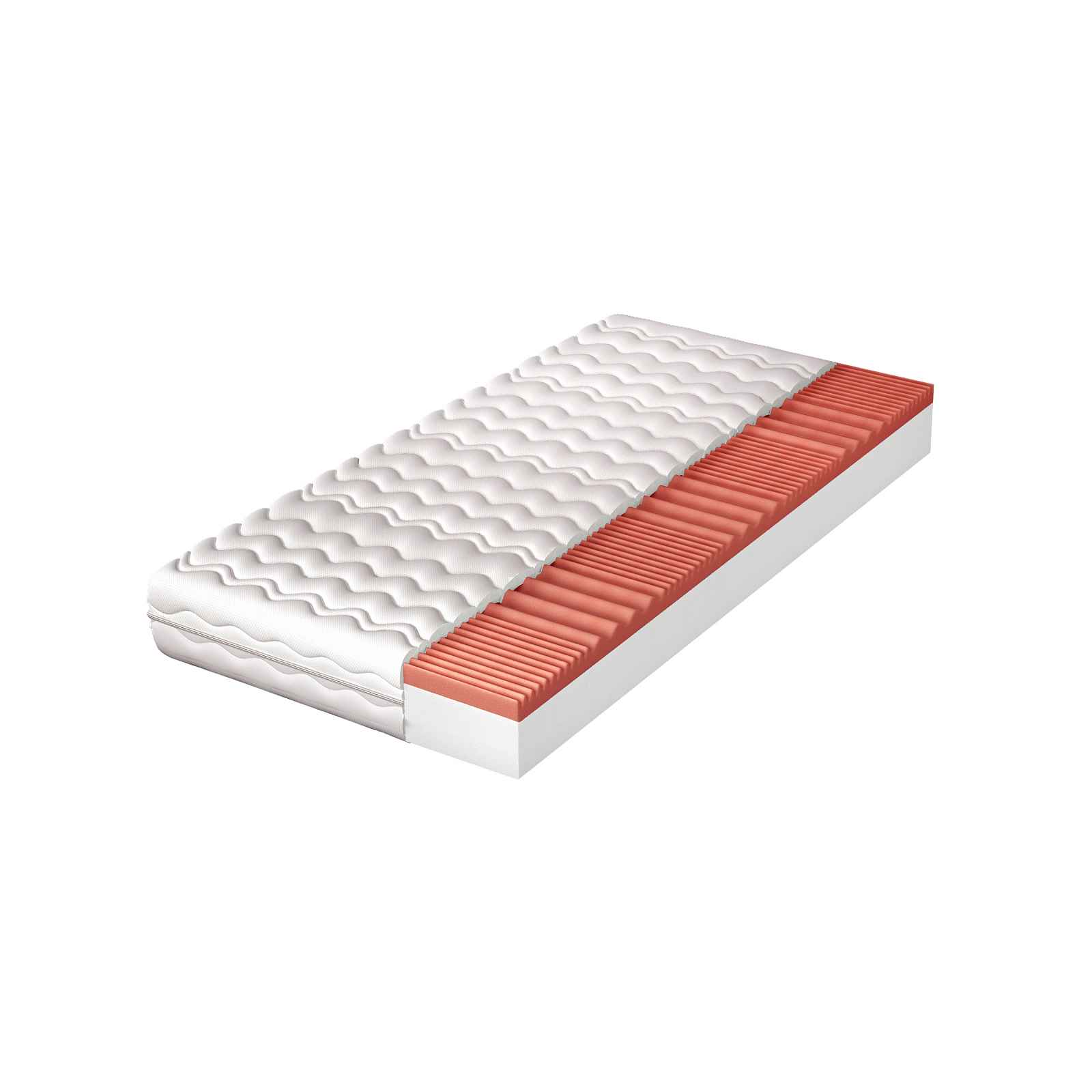 Matrace 70x140 cm Sendvičová matrace střední tuhosti s profilovanými masážními zónami a pratelným potahem. Masážní 7 - zónový profil pro relaxaci celého těla. Snímatelný a pratelný potah. Doporučený podklad: pevné nebo polohovací lamelové rošty Maximální nosnost: 110 kg Výška matrace: 12 cm Pěna T25 Záruka 24 měsíců.