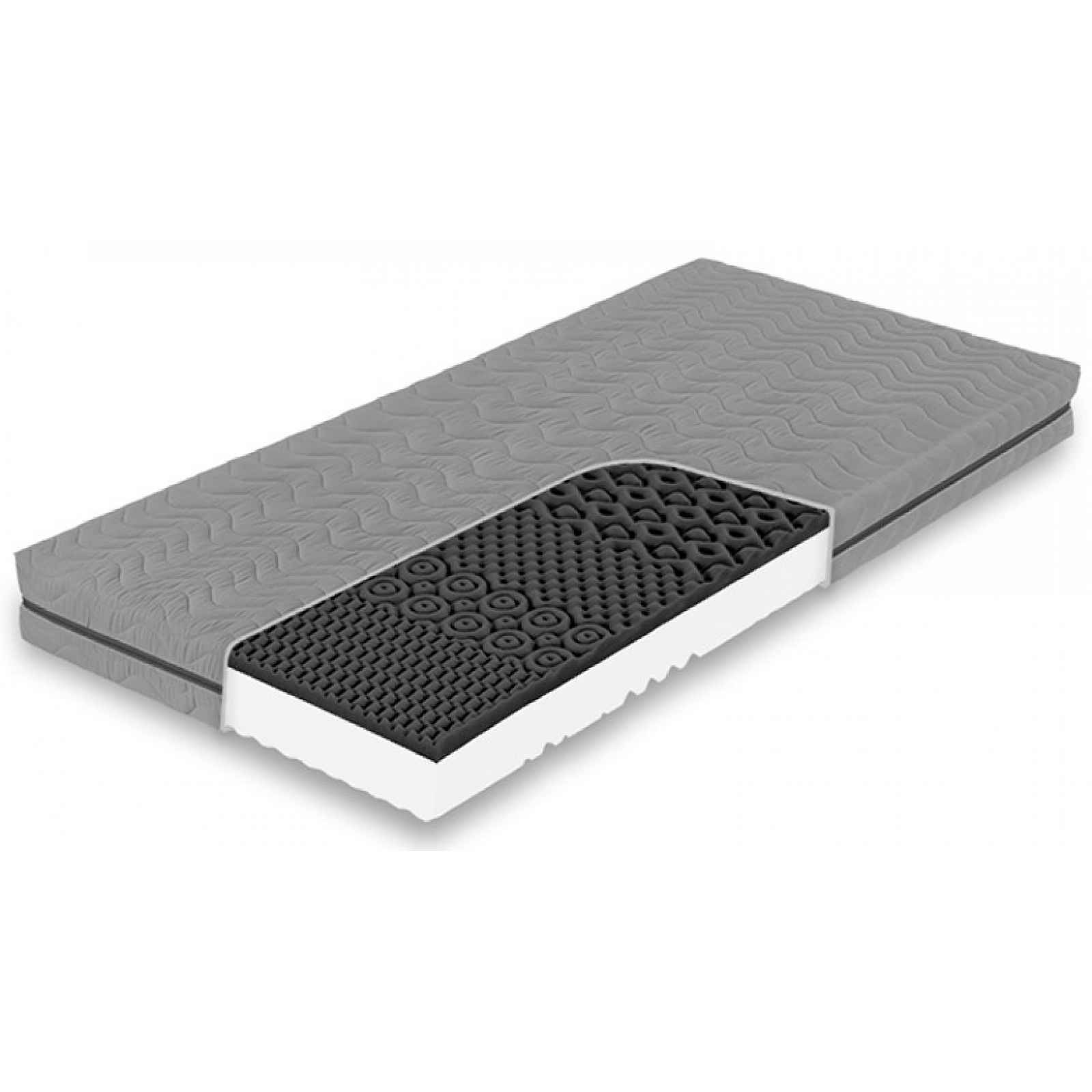 Oboustranná matrace z pružných a vzdušných pěn Flexifoam® s rozdílnou tuhostí a profilací stran. Vybavena snímatelným potahem v barvě šedá s možností praní. - sendvičová matrace - plocha 90×200 cm - výška jádra matrace: 12 cm - výška v potahu: cca 14 cm - doporučená nosnost: do 90 kg - oboustranná: bílá strana RELAX MAX/černá strana RELAX – rozdílná tuhost a vlastnosti stran – vyhoví partnerům s různými požadavky na ložné strany - bílá strana RELAX MAX: tužší strana, bílá pěna Flexifoam®, výrazná masážní profilace povrchu, stupeň tuhosti: 3 (stupnice tuhosti: 1 měkká – 5 tuhá) - černá strana RELAX: měkčí strana, černá pěna Flexifoam® Black Flexx, jemná masážní profilace povrchu, maximální pružnost a prodyšnost, stupeň tuhosti: 2,5 (stupnice tuhosti: 1 měkká – 5 tuhá) - potah Relaxtic: barva šedá, vzdušný materiál (vhodný, když se více potíte, klimatizační vrstvy – muže nepřehřívají, ženy nechladí), neprošitý, snímatelný na zip (snadná manipulace díky konstrukci ze 2 samostatných částí), pratelný na 60 °C, vhodný i pro alergiky - vhodné uložení na: pevný laťkový rošt, pevný lamelový rošt, polohovatelný lamelový rošt - mechanický test: 40.000 cyklů - český výrobek