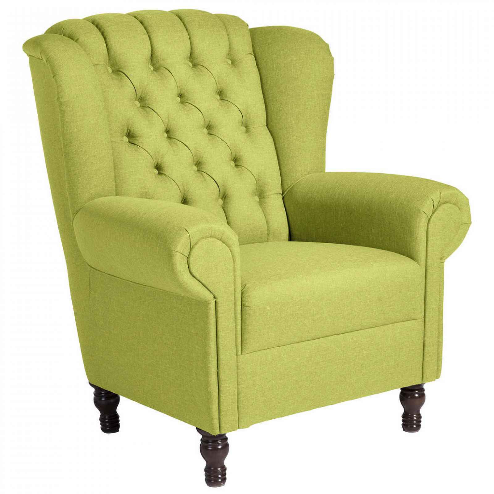 KŘESLO UŠÁK, textil, světle zelená - ON.ONLY,2922-1100-1652373-F07 - FLACHGEWEBE, 16523.73 APFEL, - FÜßE GEDRECHSELT BUCHE DUNKEL