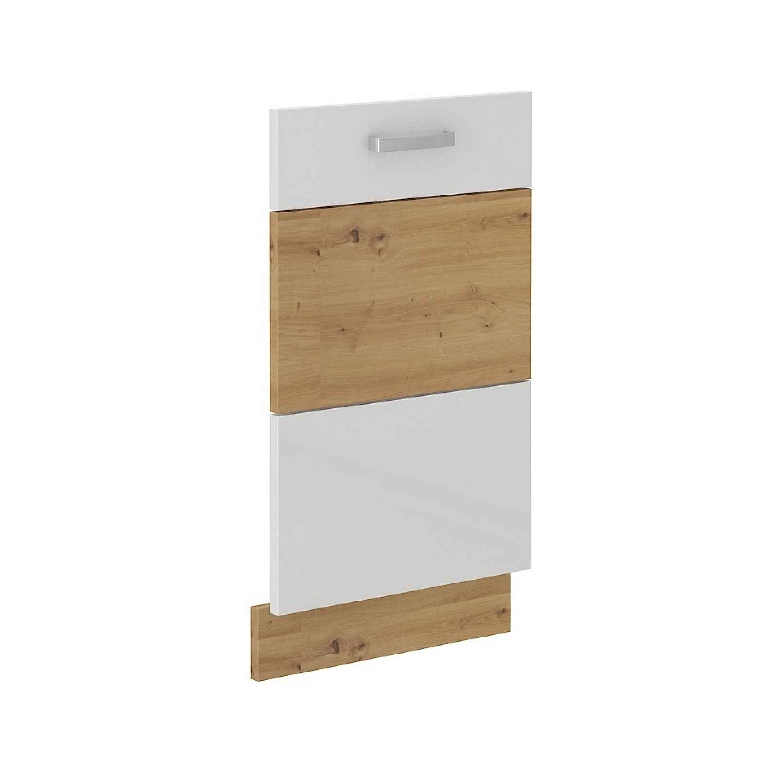 Dvířka na myčku 71,3 x 44,6 cm Určeno pro myčku se skrytým ovládacím panelem. Součástí dvířek je i přední sokl. Barva: - dvířka: bílý lesk, dub artisan - úchyt: stříbrný mat Rozměry (šxv): 44,6 x 71,3 cm Materiál: - dvířka: lamino, MDF, ABS hrany - úchyt: kov Dodáváno v demontu.