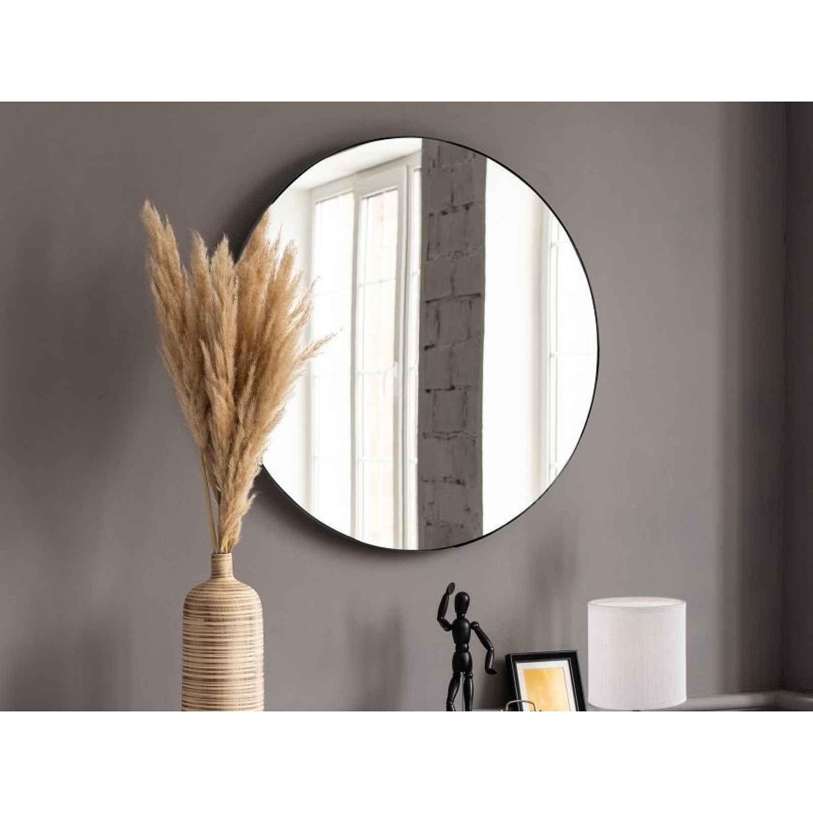 Moderní nástěnné zrcadlo kulatého tvaru s elegantním černým rámečkem se hodí do jakékoliv místnosti. Průměr 50 cm. Moderní kulaté zrcadlo o průměru 50 cm s elegantním kovovým rámečkem v černé barvě se snadno kombinuje s jakýmkoliv stylem interiéru. Jeho minimalistický design působí lehce a vzdušně, a proto se hodí do koupelny, předsíně, ložnice i obývacího pokoje. - balení obsahuje pouze 1 ks - materiál: zrcadlové sklo, kov - průměr: 50 cm - barva rámu: bílá - tloušťka: 0,5 cm - snadná instalace: zrcadlo je vybaveno vlastním úchytem pro bezpečné zavěšení, připravené k okamžitému zavěšení - dekorační i praktický doplněk - styl: moderní, minimalistický