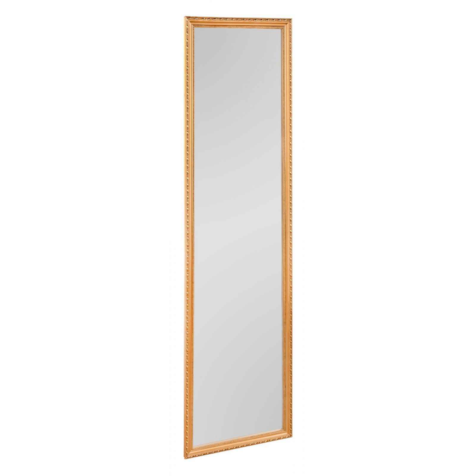 Nástěnné zrcadlo 35x125 cm s dřevěným rámem ve zlaté barvě snadno zapadne do jakékoliv místnosti i různých stylů bydlení. Elegantní nástěnné zrcadlo s dřevěným rámem ve zlaté barvě je dekorativním i praktickým doplňkem každého interiéru. Snadno zapadne do předsíně, ložnice i obývacího pokoje. Rozměr 35×125 cm. - balení obsahuje pouze 1 ks - materiál: zrcadlové sklo, dřevo - rozměr: 35×125 cm - tvar: hranatý - barva rámu: zlatá - tloušťka: 2 cm - orientace: vertikální - instalace: integrovaný úchyt pro snadné a okamžité zavěšení - dekorační i praktický doplněk - styl: moderní