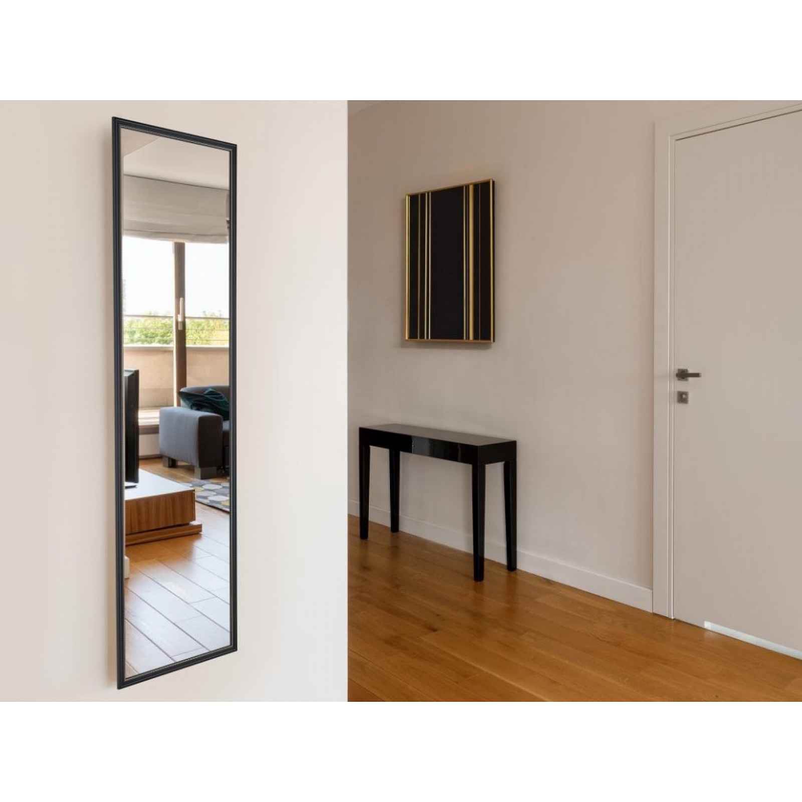 Nástěnné zrcadlo 33,5x125 cm v černém rámu se zlatým perlovým dekorem vnese do interiéru šmrnc a nádech luxusu. Elegantní nástěnné zrcadlo v černém rámu se zlatým perlovým dekorem je stylovým i praktickým doplňkem každého interiéru, do kterého vnese nádech luxusu. Rozměr 33,5×125 cm. - balení obsahuje pouze 1 ks - materiál: zrcadlové sklo, plast - rozměr: 33,5×125 cm - tvar: hranatý - barva rámu: černá, zlaté tečky perly - tloušťka: 1,5 cm - univerzální zavěšení: vertikální/horizontální - snadná montáž: integrovaný úchyt pro bezpečné a okamžité zavěšení - dekorační i praktický doplněk - styl: moderní