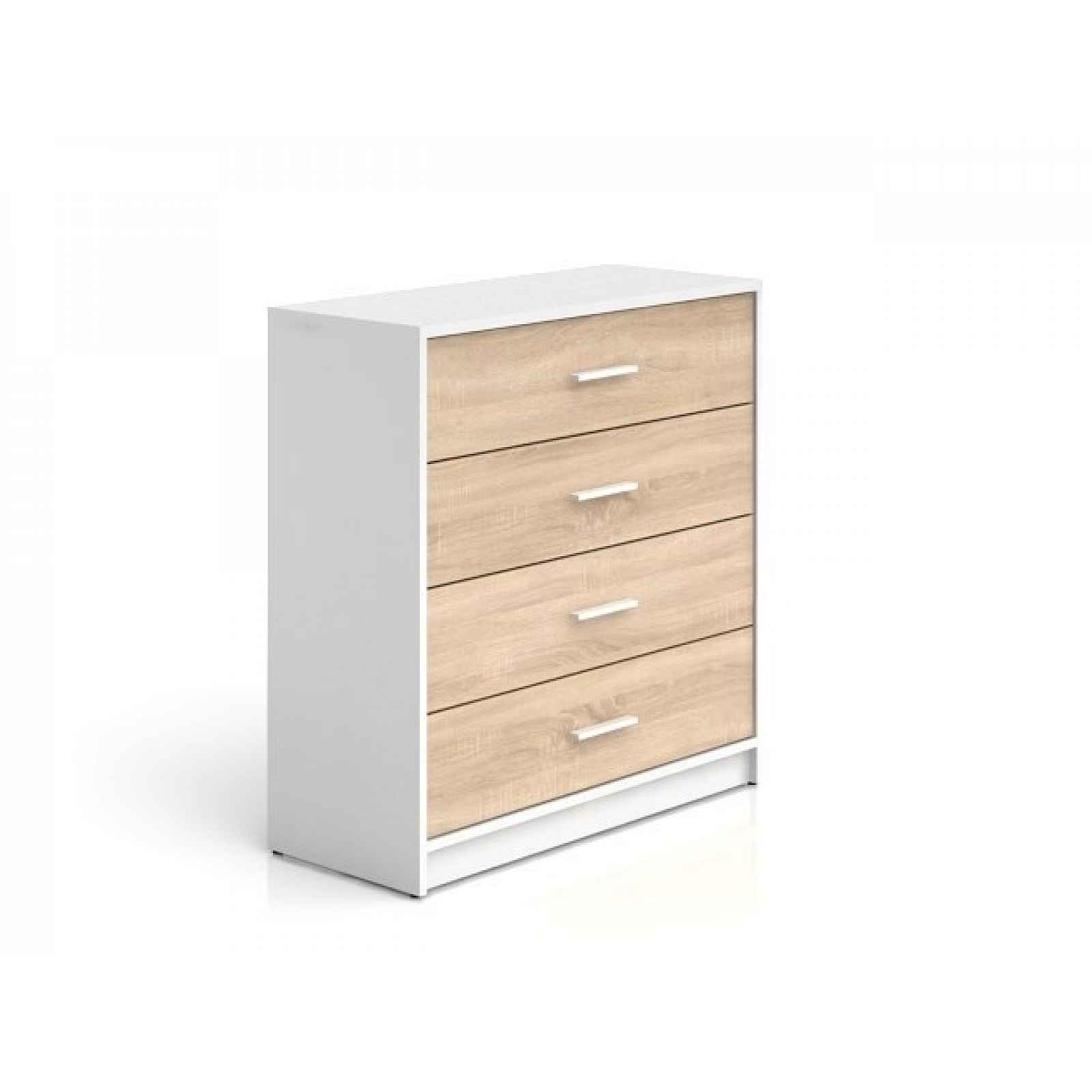 Komoda Barva: bílá/dub sonoma Rozměry (šxvxh): 80 x 84 x 34 cm Pojezdy zásuvek kolečkové Dodání v demontu. Záruka 24 měsíců. Kvalitní materiál LTD.