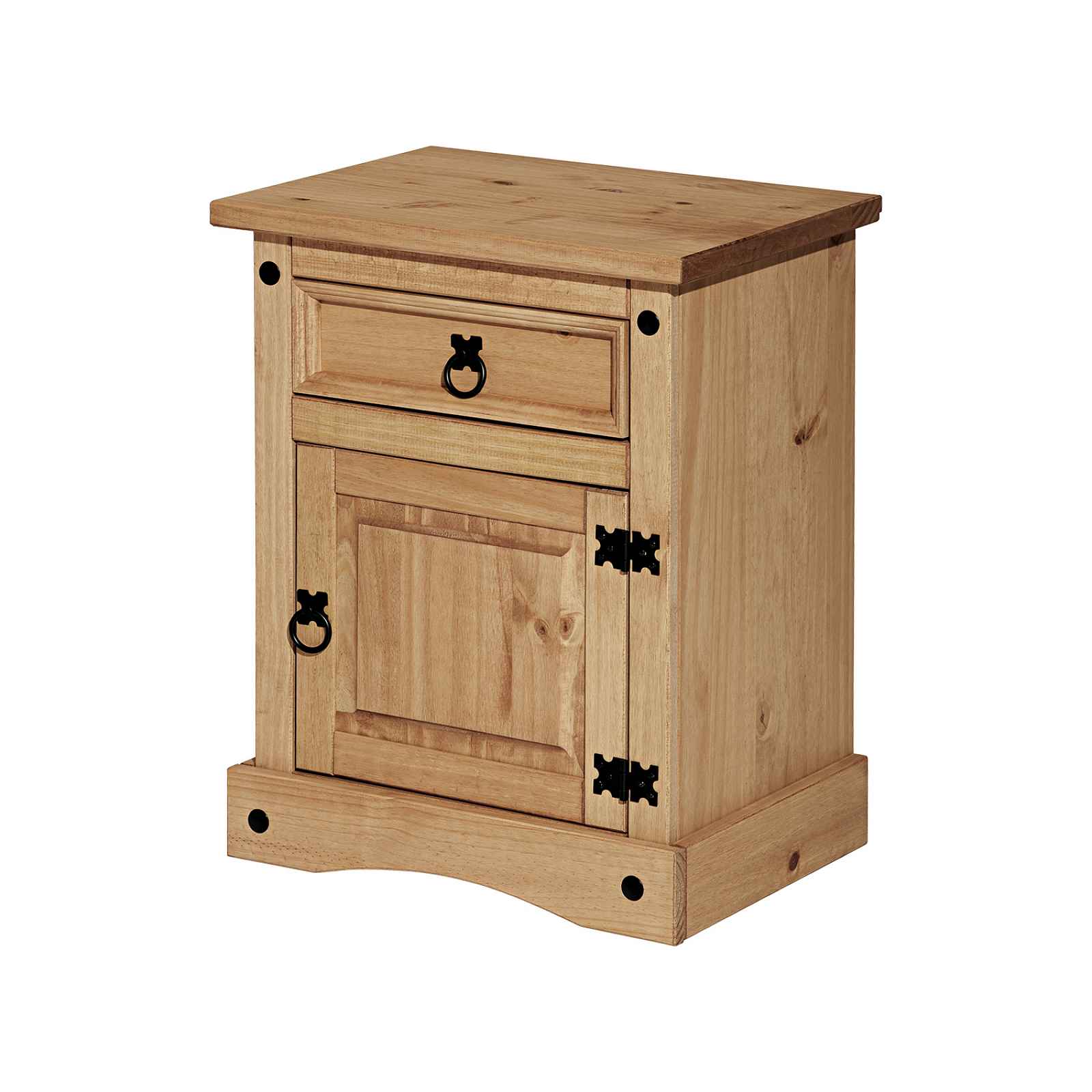 Noční stolek z masivu rozměry [cm] 53 x 38 x 67 (š x h x v) masiv borovice povrchová úprava - voskované v medovém odstínu 1 zásuvka, 1 dvířka kovové zdobené úchyty hloubka zásuvky: 30 cm Dodává se v demontu. Záruka 24 měsíců.