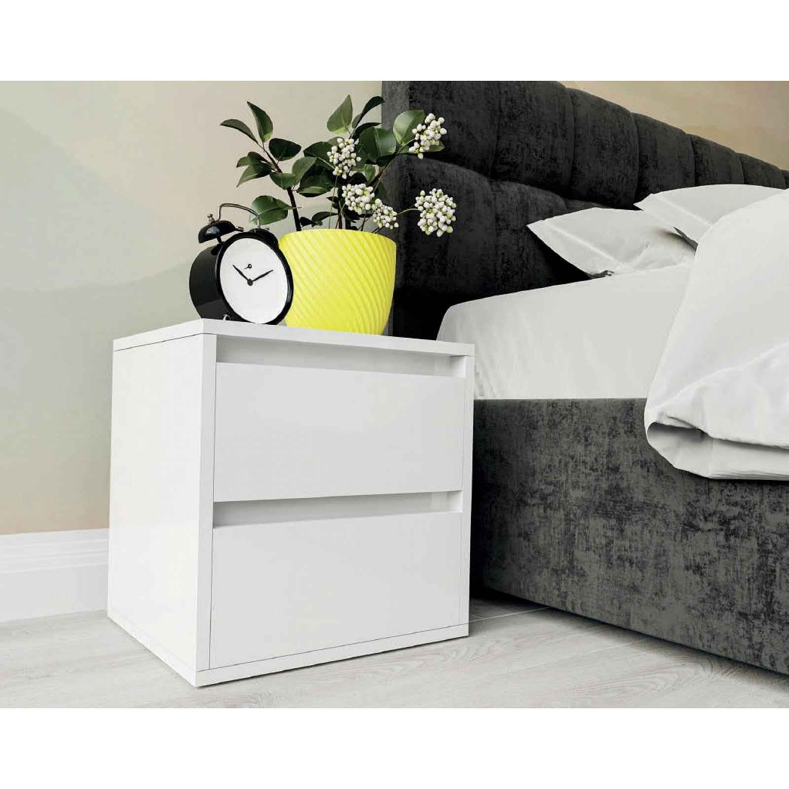 Noční stolek se zásuvkamiMateriál: laminoBarva: bíláRozměry (šxvxh): 40 x 40 x 35 cmZásuvky jsou bezúchytovéDodáváno v demontu