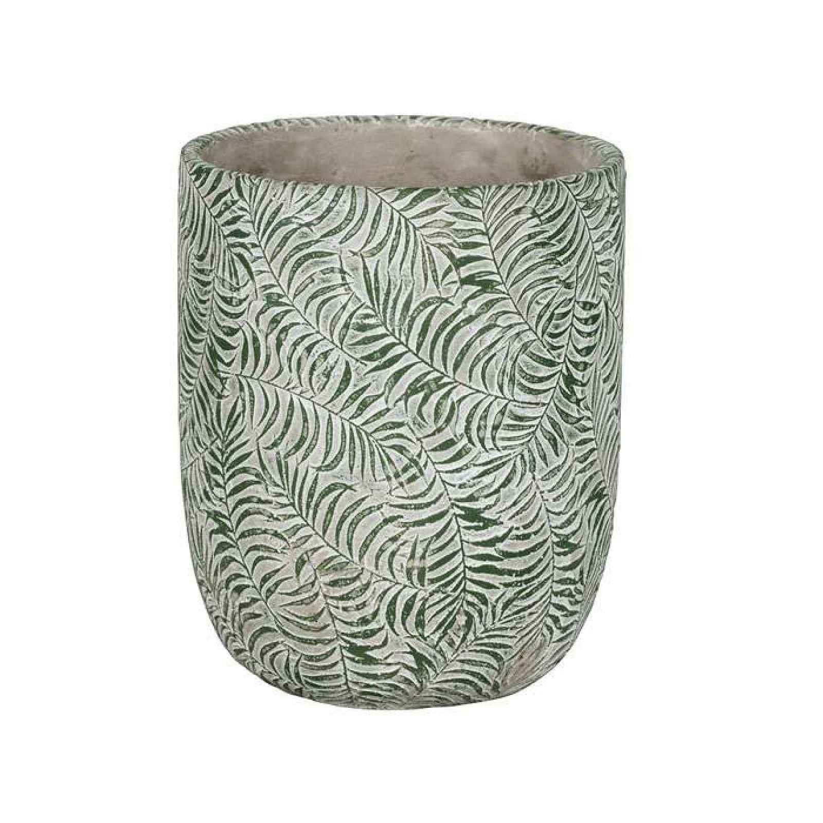 Keramický obal na květináč s dekorem listu.