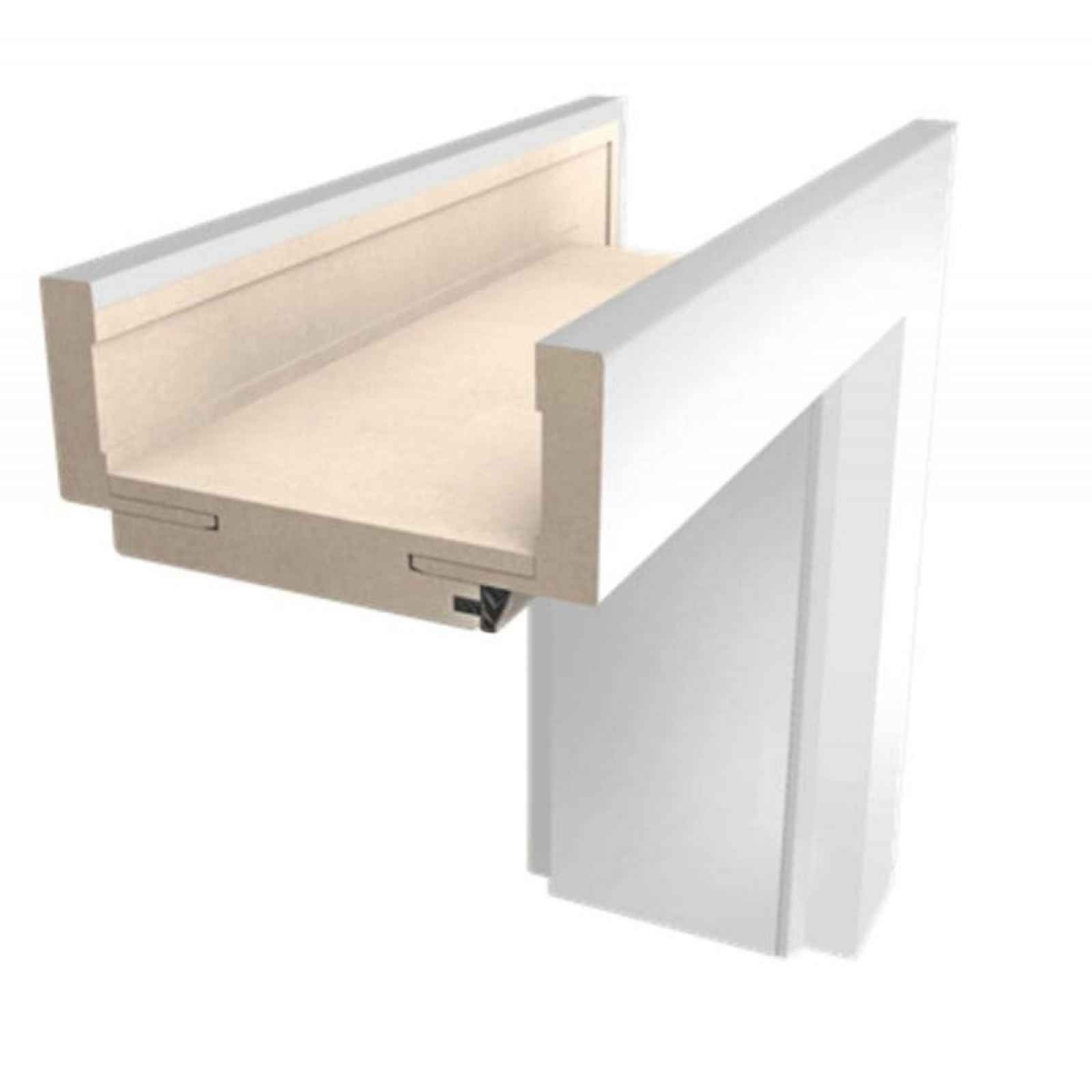 Pravá obložková zárubeň v bílém matném provedení pro dveře o šířce 60 cm pro tloušťku stěny 12-14 cm.